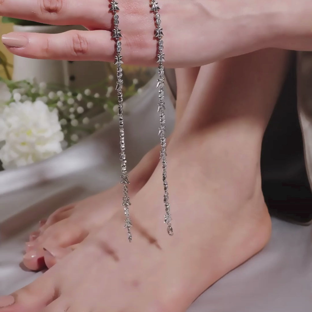 Product Description:- Let your style take flight with our Butterfly Whimsy anklet. Expertly crafted from lustrous 925 sterling silver, this anklet is adorned with delicate butterfly charms, each featuring sparkling cubic zirconia accents. The rhodium plating ensures lasting shine and durability. Perfect for adding a touch of nature-inspired elegance to your attire, the Butterfly Whimsy Rhodium-Plated CZ 925 Sterling Silver Anklet is a symbol of grace and transformation that graces your ankle with charm and allure.