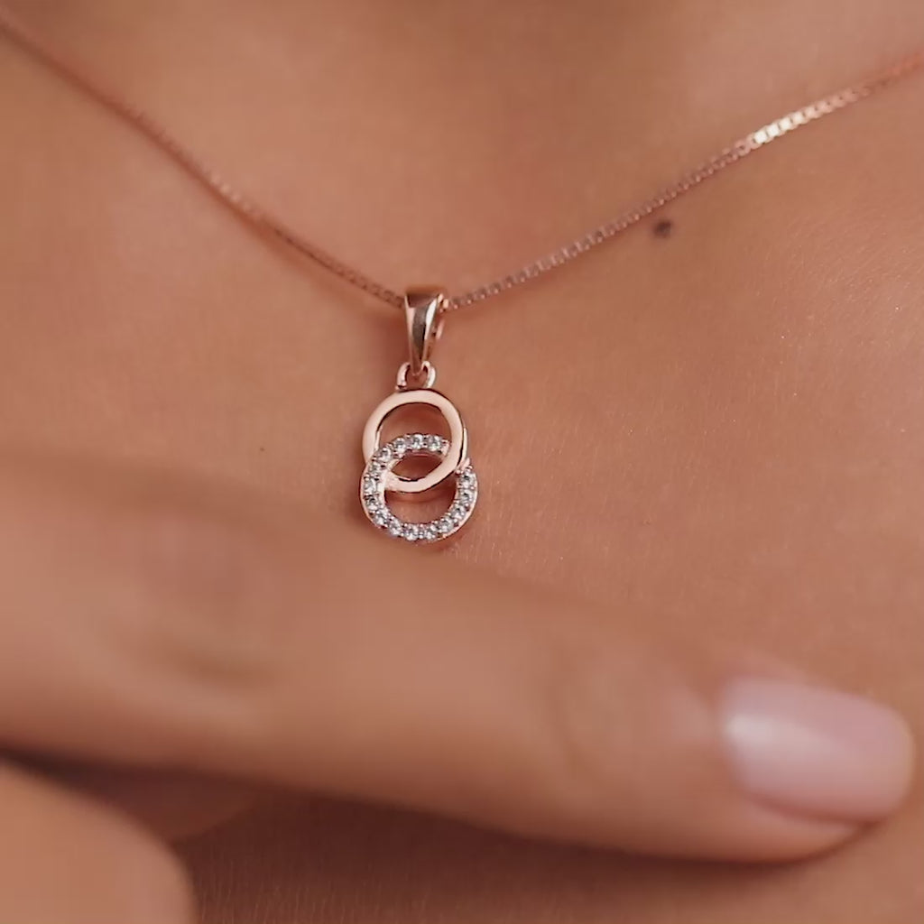 Rosy Halo Rose Gold-Plated Circular CZ 925 Sterling Silver Pendant with Chain