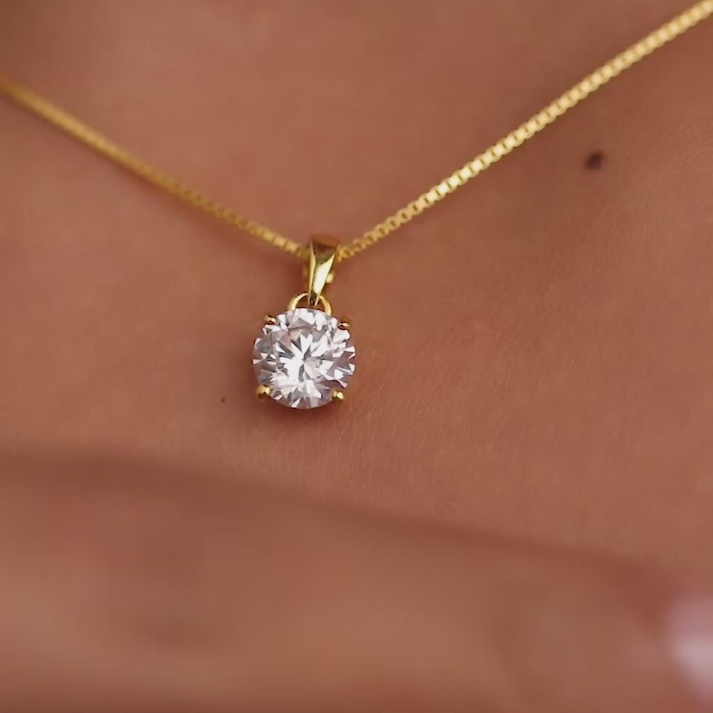 Solitaire Gold Plated 925 Sterling Silver Pendant with Box Chain