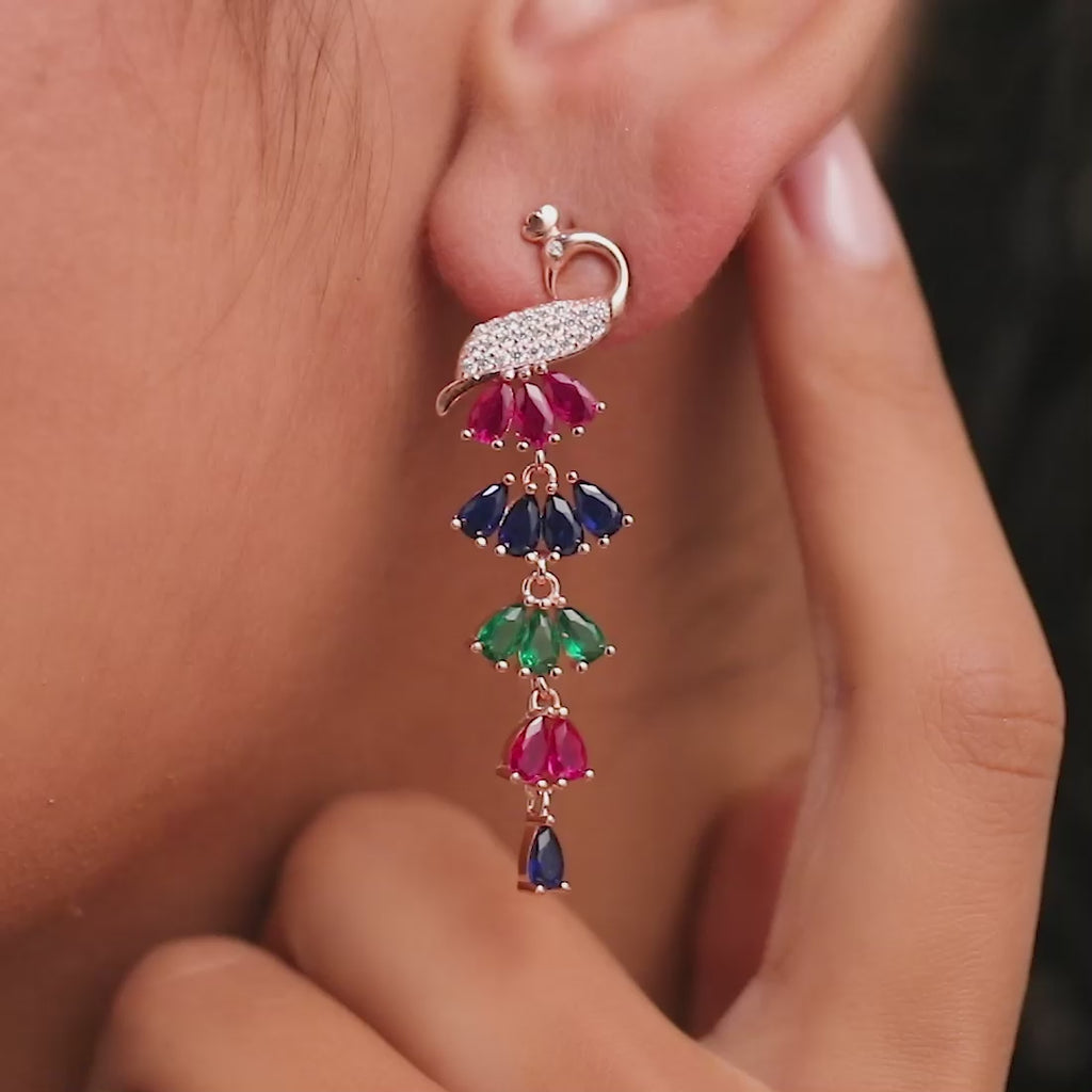 Peacock Rose Gold Plated Cubic Zirconia 925 Sterling Silver Drop Earrings