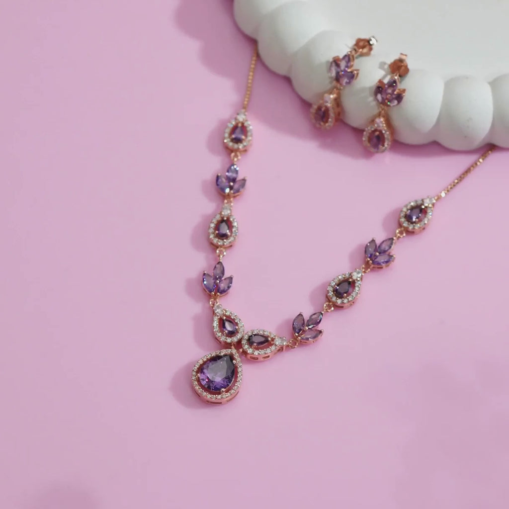 Product Description:- This Rose Petal Radiance silver jewellery set is the perfect blend of luxury and affordability. The delicate handcrafted design features eye-catching cubic zirconia stones, plated in stunning rose gold. With a designer touch and high-quality materials, this set is perfect for all occasions and even those with sensitive skin. Comes with an authentication certificate for added assurance of quality.