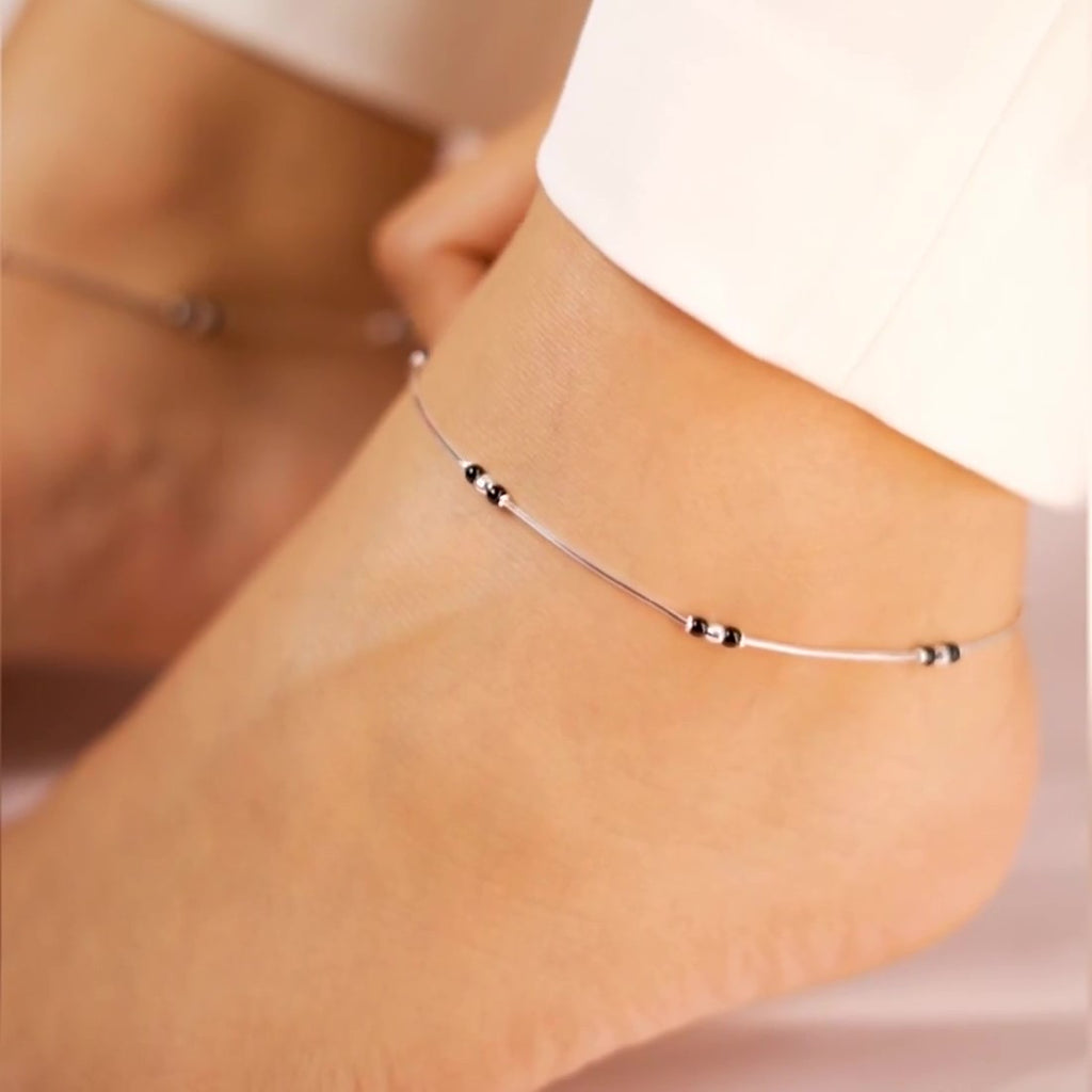 Product Description:- Embrace the radiance of the Shimmering Harmony Sterling Silver Anklet. Crafted from high-quality silver and elegantly plated with Silver, this anklet combines beauty and durability. The anklet features a mesmerizing array of beads, each intricately crafted to add a touch of charm and sparkle to your every step. The rhodium plating ensures a long-lasting, lustrous shine, while the silver base metal adds a hint of elegance. Whether you're strolling along sandy beaches or attending a special occasion, this anklet will effortlessly enhance your style and reflect your unique personality. Adorn your ankle with the timeless beauty of the Shimmering Harmony anklet and let its enchanting allure captivate those around you.