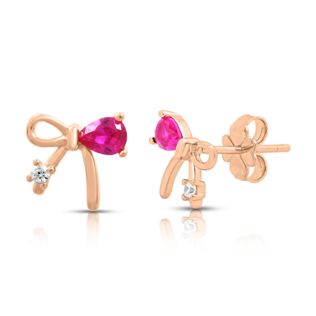 Product Description:- Crafted from high-quality 925 sterling silver and plated with elegant rose gold, these earrings feature a delicate bow design that exudes charm and femininity. The earrings are accented with sparkling cubic zirconia stones, adding a touch of brilliance to their graceful form. Perfect for both casual and formal occasions, they bring a refined, stylish finish to any outfit. With their timeless appeal, these earrings are a must-have addition to any jewelry collection.