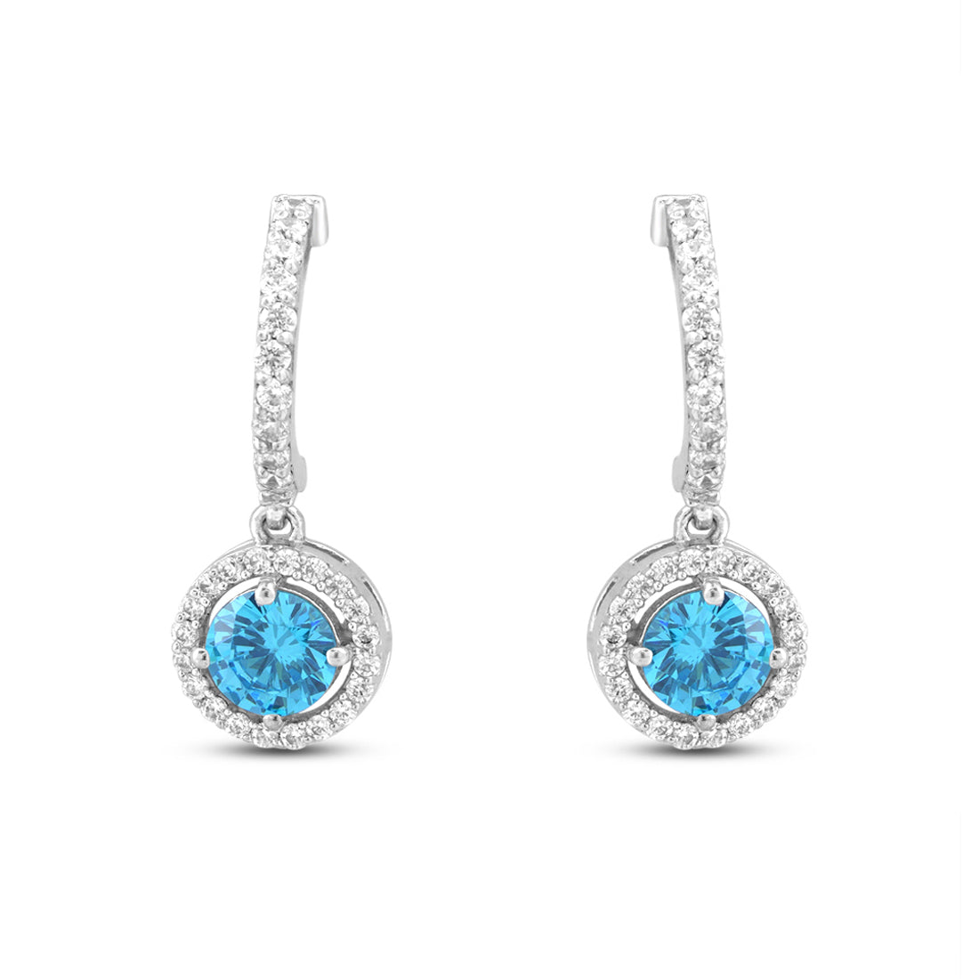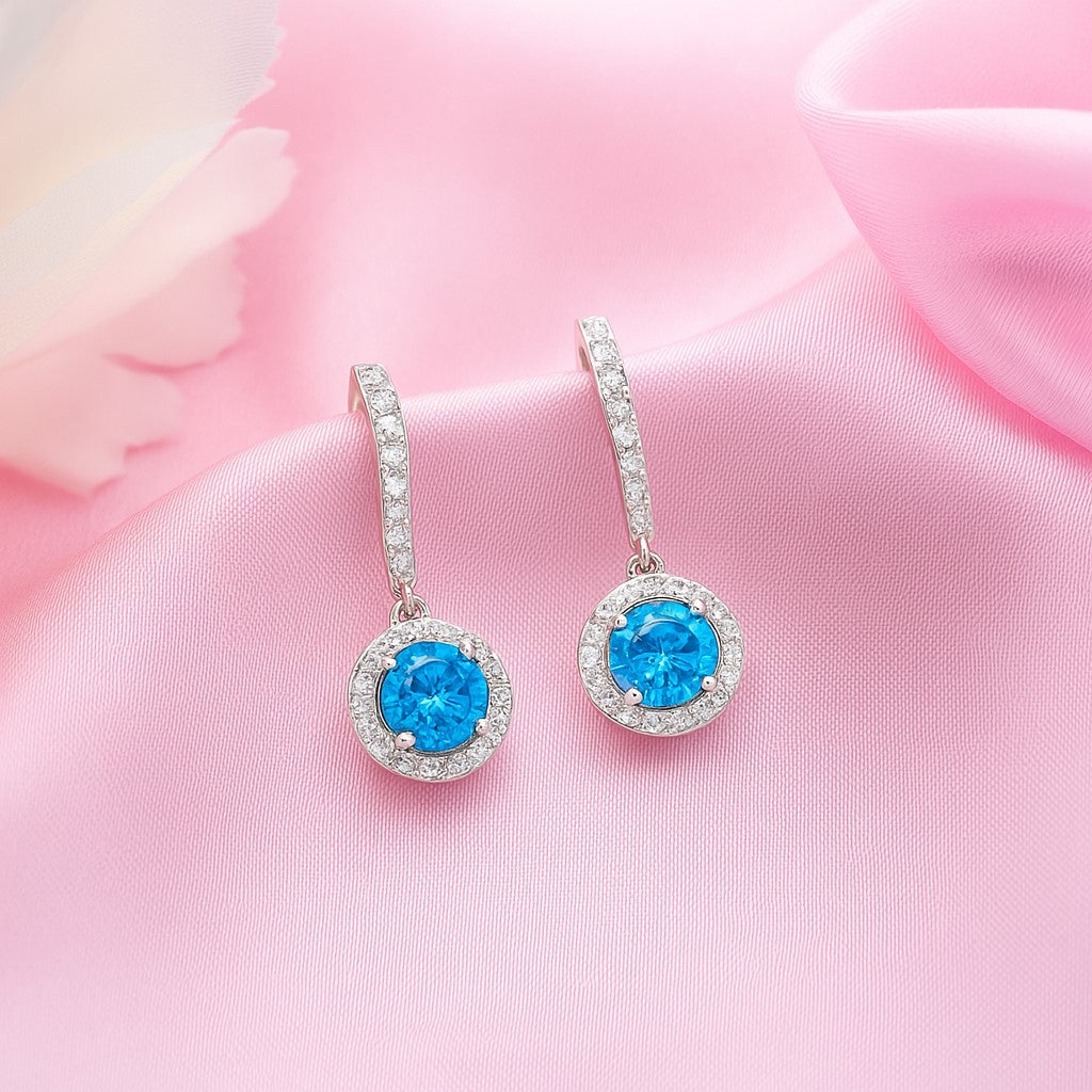 Elegant Skyblue Studded Rhodium Plated 925 Sterling Silver Earrings