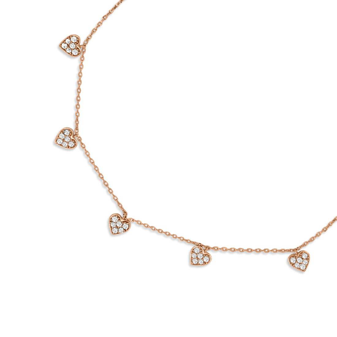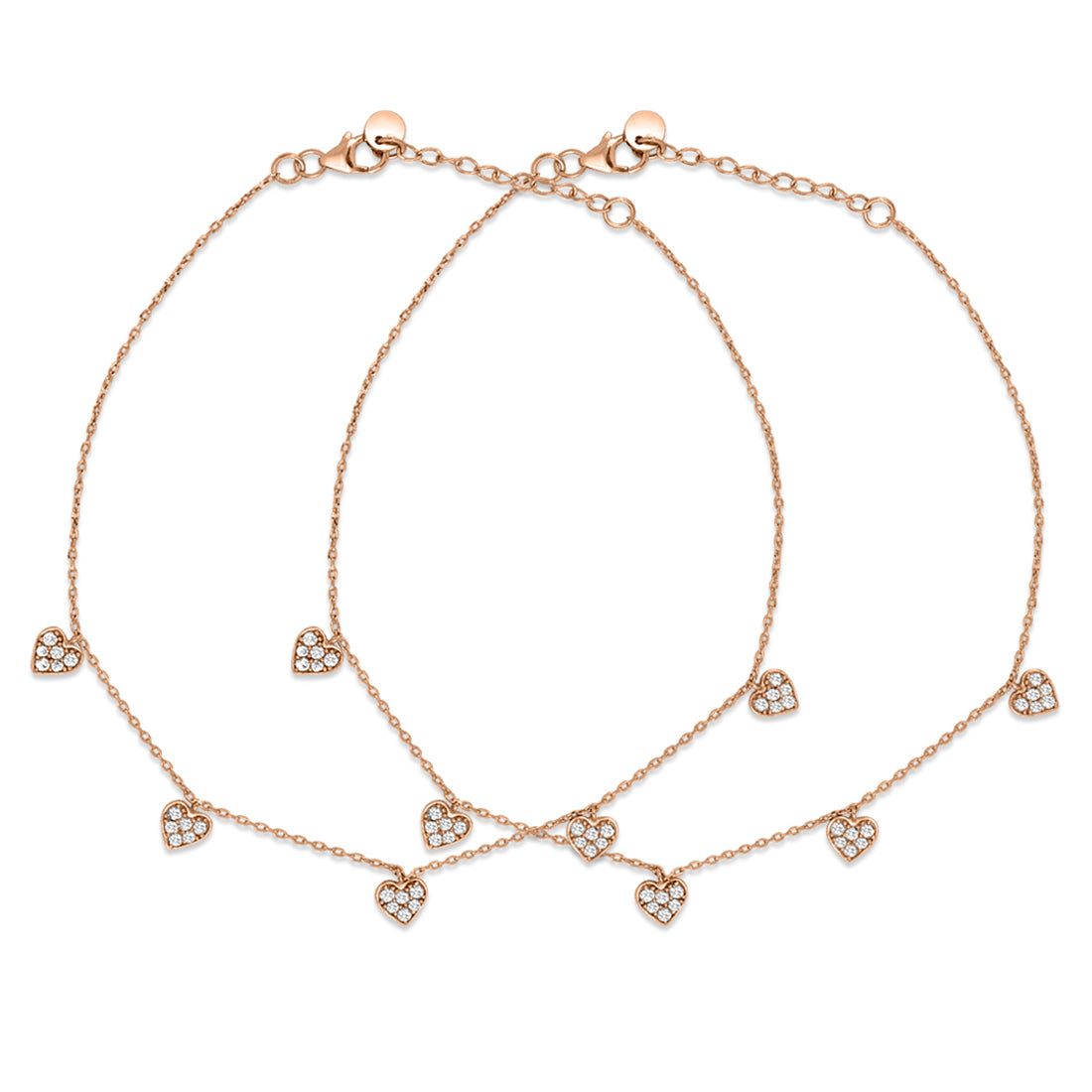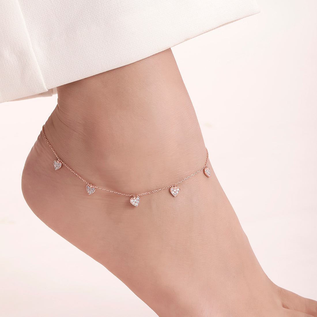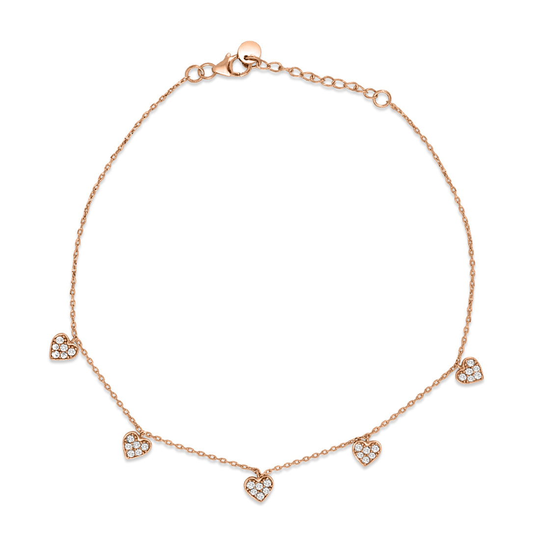 Heart CZ Rose Gold Plated 925 Sterling Silver Anklet
