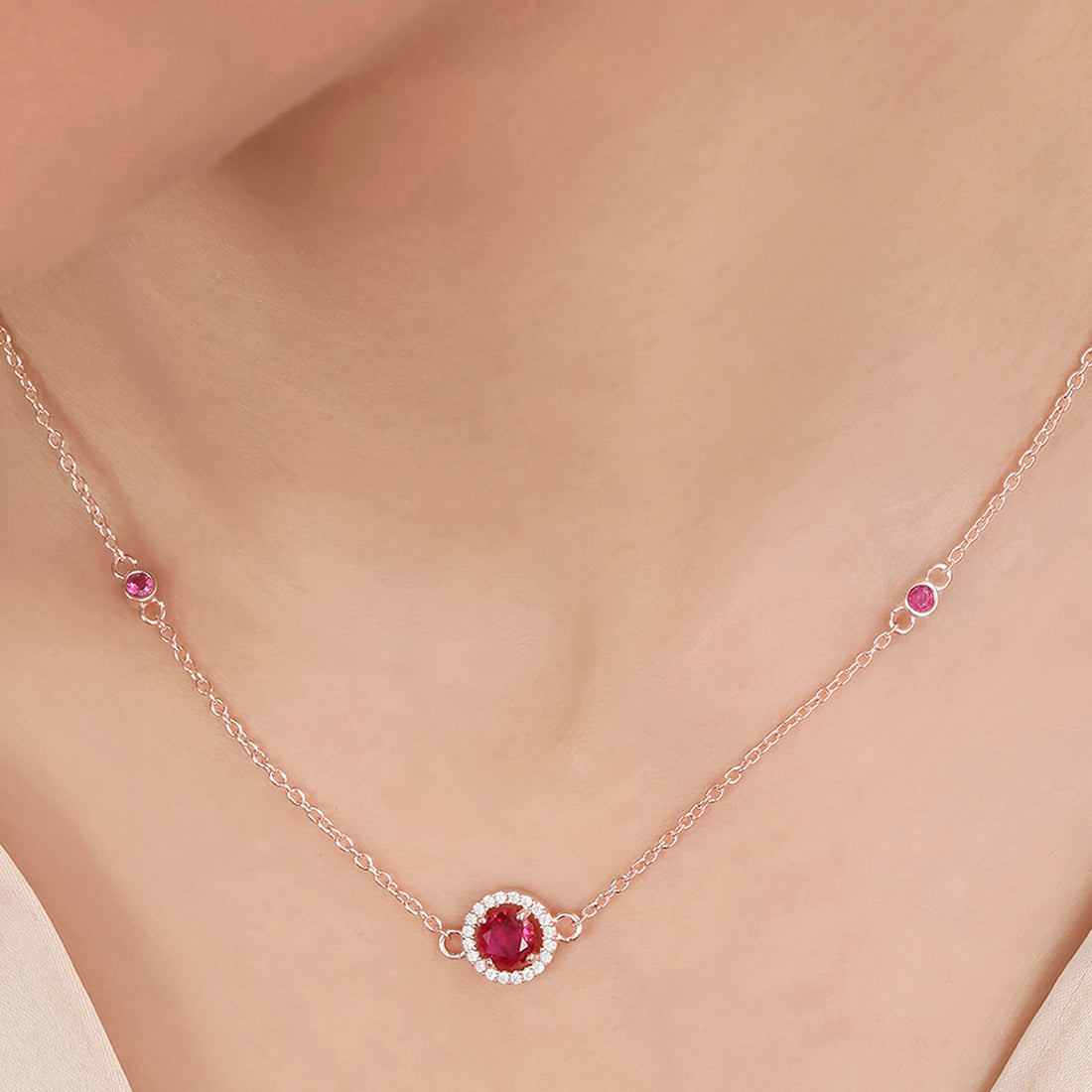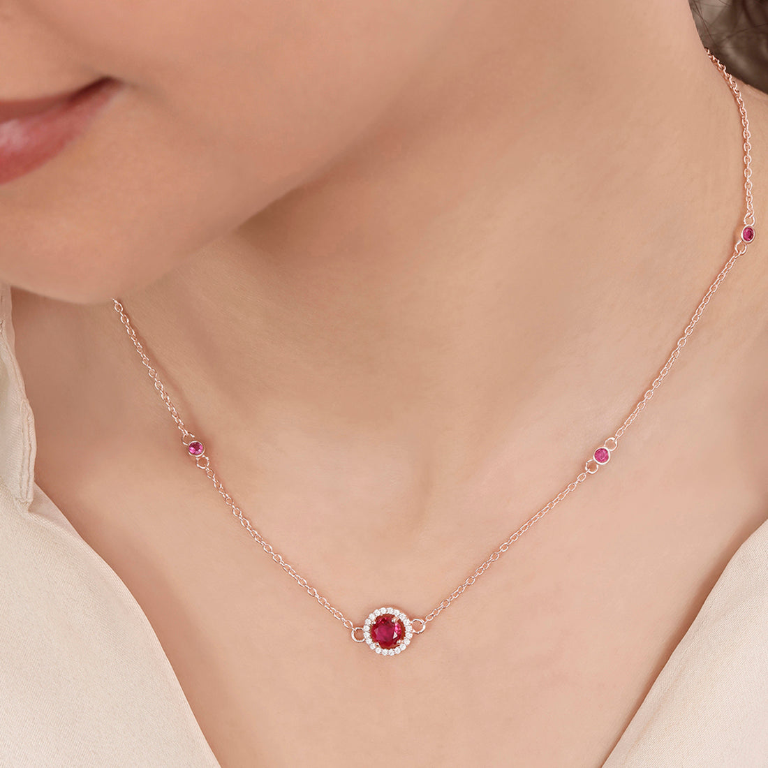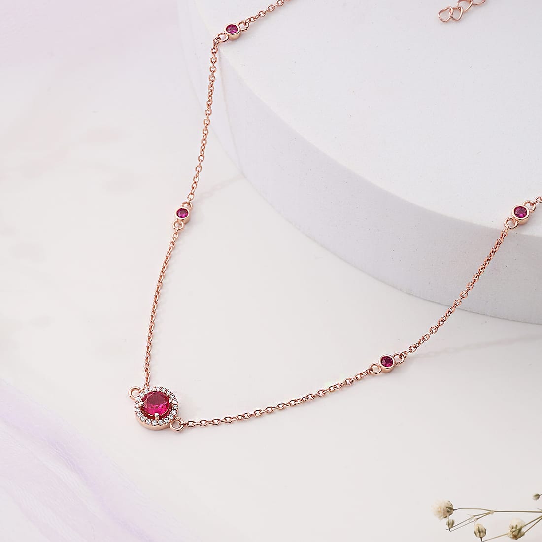 Solitaire Halo Rose Gold Plated 925 Sterling Silver Necklace