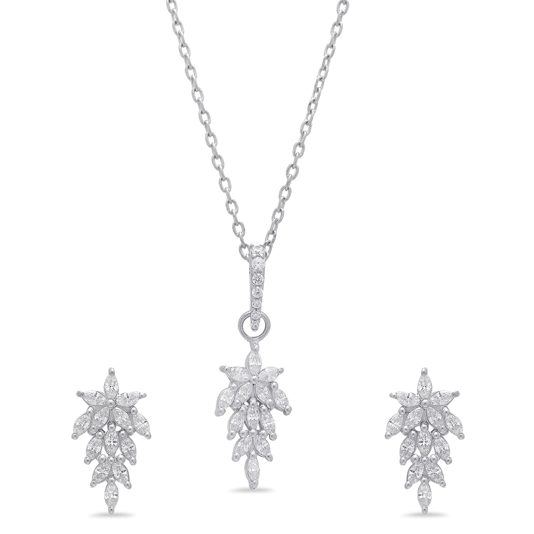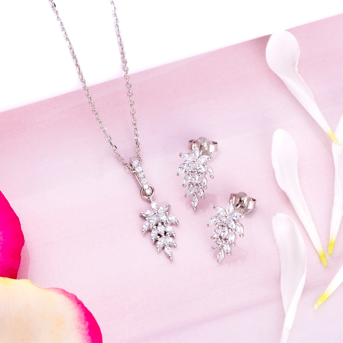 Whimsical Leaves Rhodium-Plated 925 Sterling Silver Jewellery Set