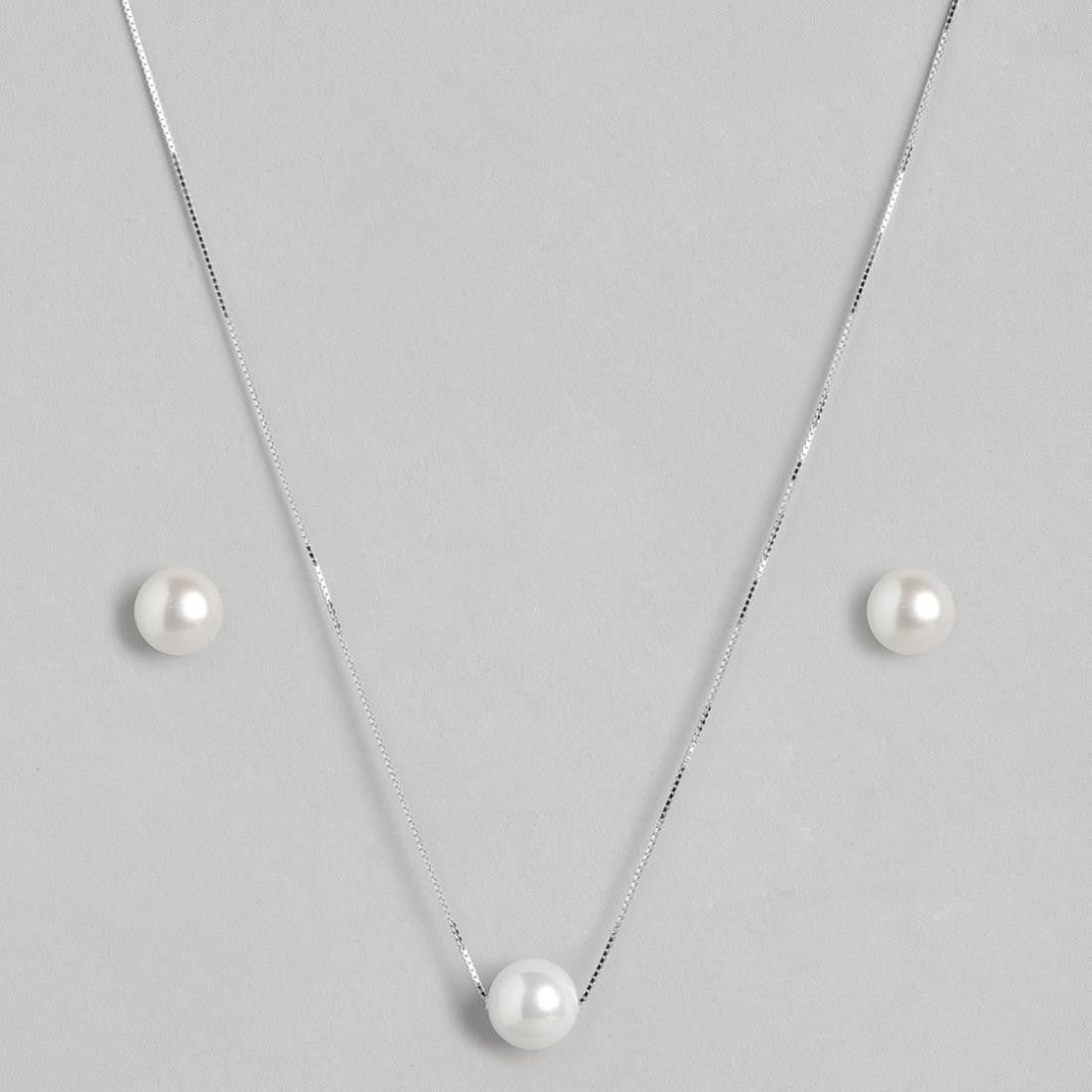 Product Description:- Crafted in 925 sterling silver with a premium rhodium plating, this set features luminous freshwater pearls that exude natural grace and sophistication. The sleek silver finish enhances durability and offers a brilliant shine, making it perfect for both everyday elegance and special occasions. Ideal as a thoughtful gift or a cherished personal keepsake.