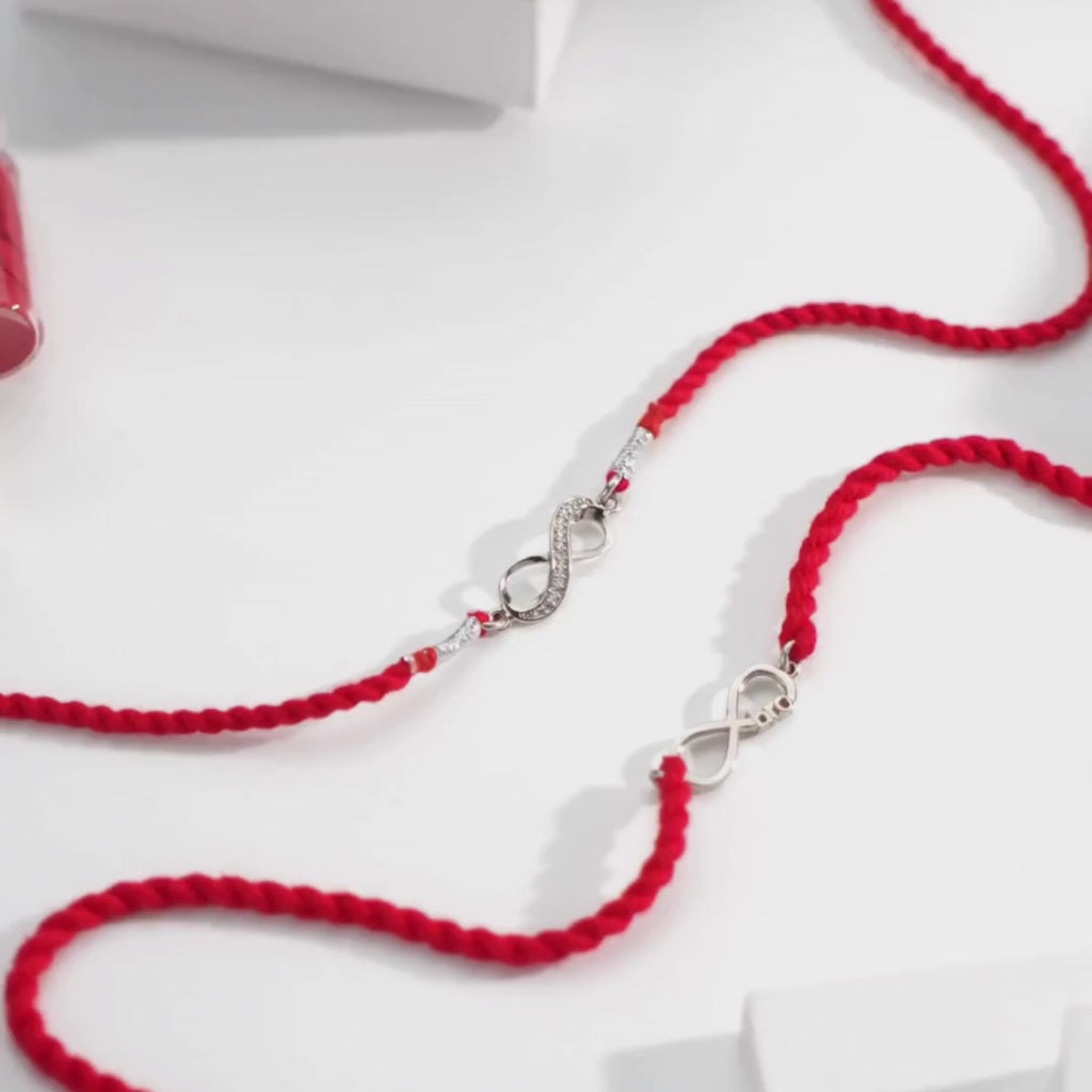 Infinity Symbol With Cubic Zirconia Rhodium-Plated Thread Rakhi For Him
