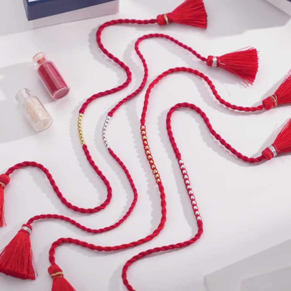 Product Description:- Celebrate the bond of love and protection with our Radiant Thread of Love Rakhi. Crafted with exquisite detail, this rakhi features a rhodium-plated 925 sterling silver design. The centerpiece is adorned with shimmering beads, adding a touch of elegance and vibrancy. The red thread symbolizes the deep bond between siblings. This rakhi is a perfect expression of love and affection, making it an ideal choice for celebrating the joyous occasion of Raksha Bandhan.