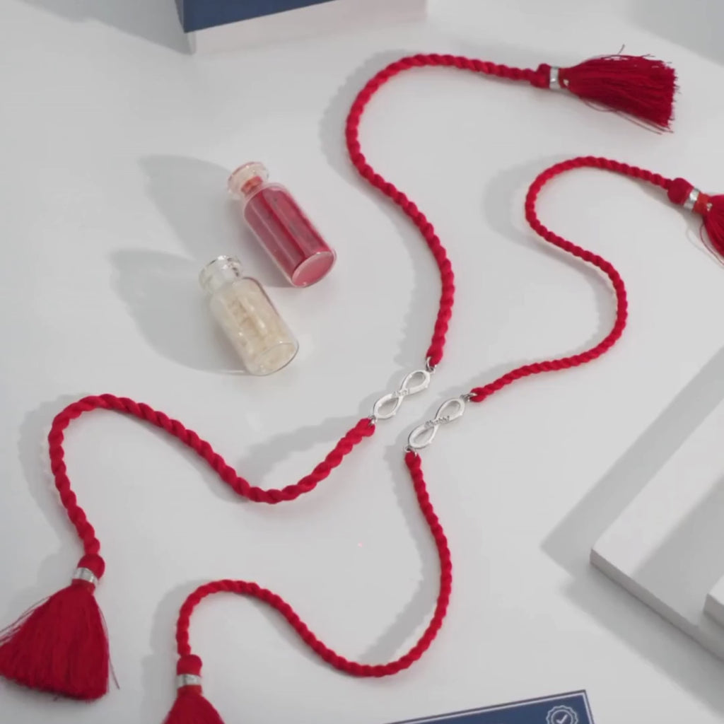 Timeless & Radiant Thread Rhodium-Plated 925 Silver Bhai-Bhabhi Rakhi Combo