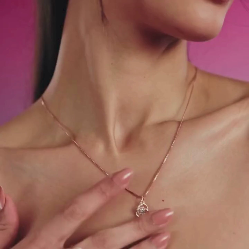About the Design : Crafted with a minimal interlinked pendant and a soft rose gold finish, it rests gently at the collarbone with timeless elegance.