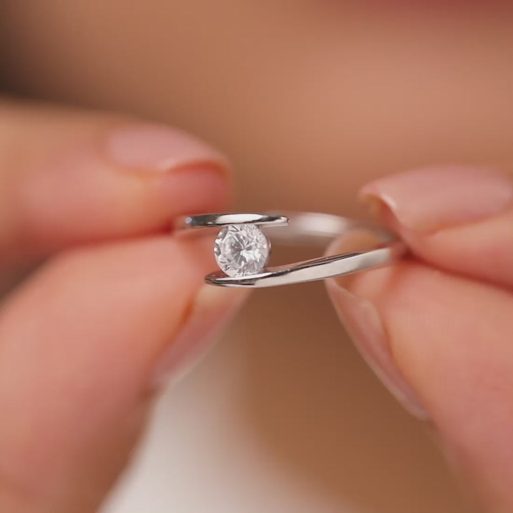 Made in 925 sterling silver with rhodium plating, the sleek band holds a brilliant solitaire CZ at the center, letting its timeless sparkle shine as the heart of the design.