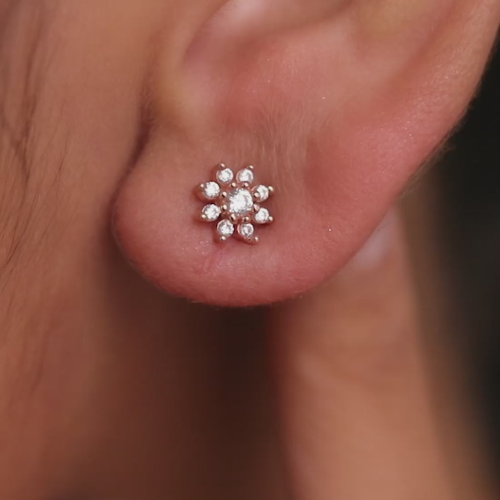 CZ Studded Floral Rose Gold 925 Sterling Silver Stud Earrings