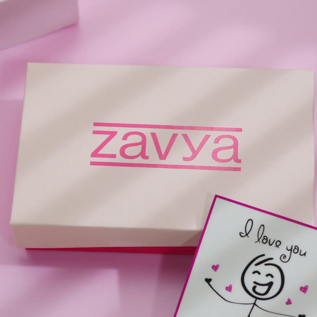 Wrapped in Zavya’s signature pink, heart-themed box — made to impress, made to express.