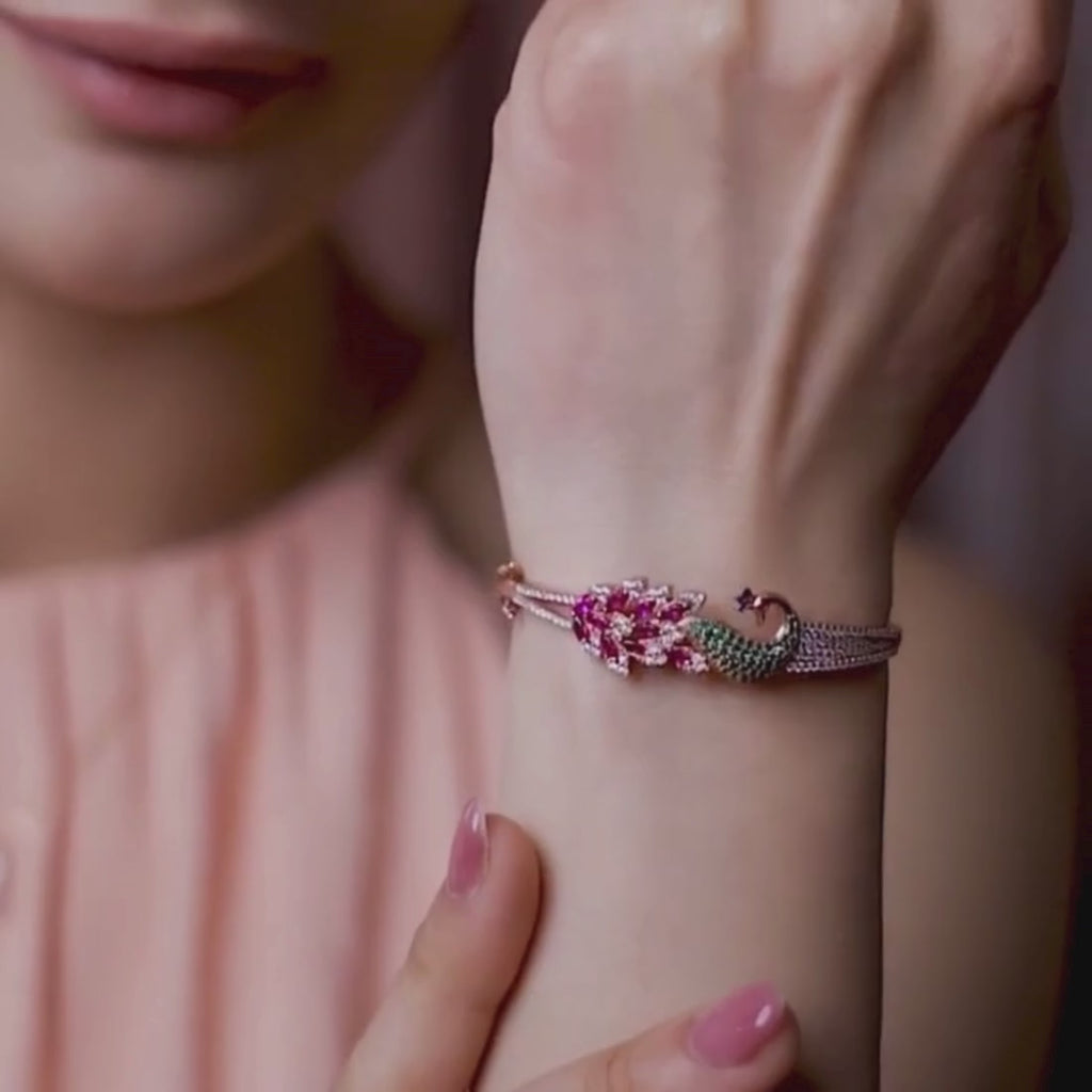 Peacock 925 Sterling Silver Bracelet In Rose Gold Gift Hamper