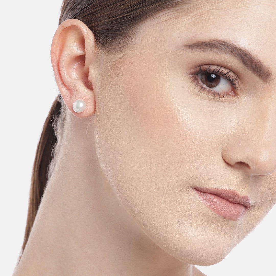 Product Description:- Wear your confidence and this pair of pearl studs by Zavya to rock the minimalist office look. Sitting snug on your earlobes, the classic studs magnify your charm and deliver a fresh take on everyday fashion.