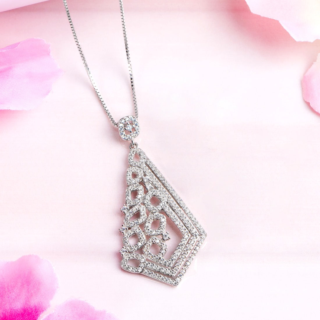 Abstract Brilliance Elegance Rhodium-Plated 925 Sterling Silver Pendant with Chain