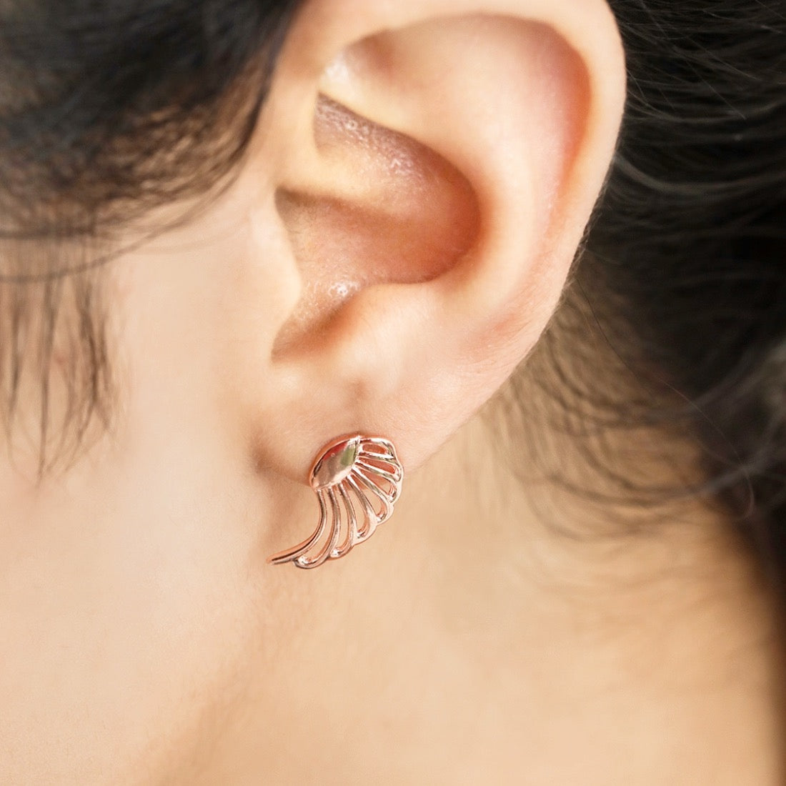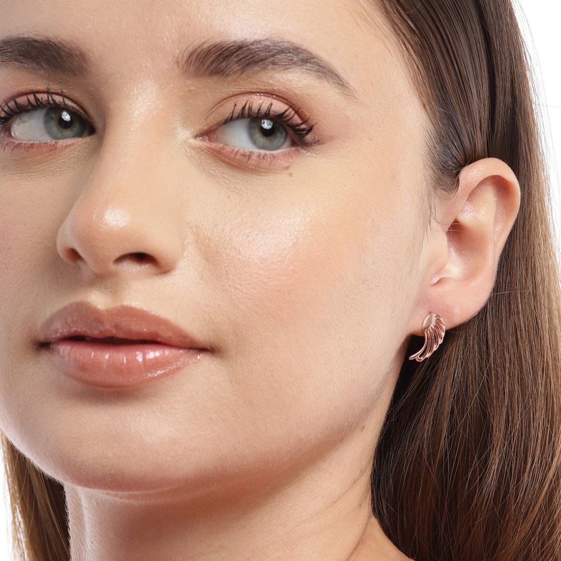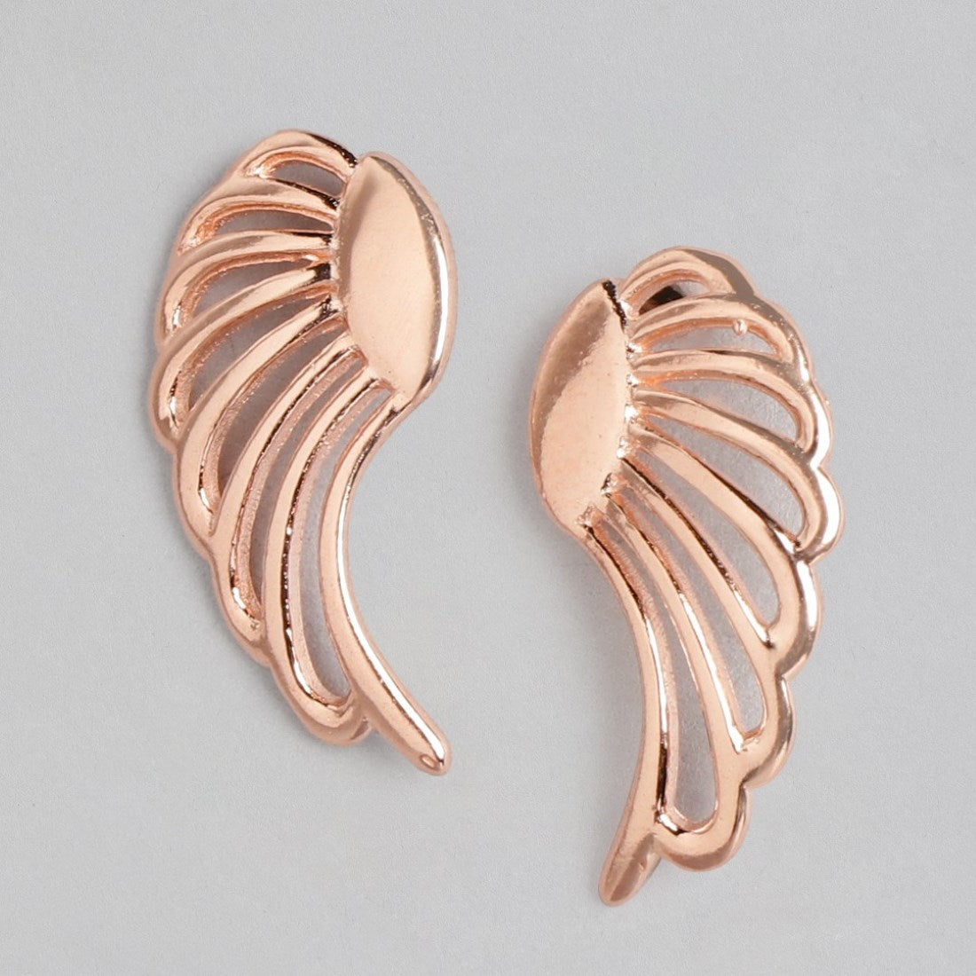 Product Description:- These exquisite earrings are a symbol of grace and protection. Crafted with care and precision, they feature intricately detailed angel wings plated in lustrous rose gold. The angelic theme carries a sense of serenity and spiritual connection, making these earrings a meaningful accessory. Whether you wear them for their symbolic significance or to elevate your style with an ethereal touch, these angel wing earrings radiate an irresistible charm that's truly divine.