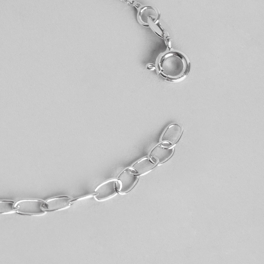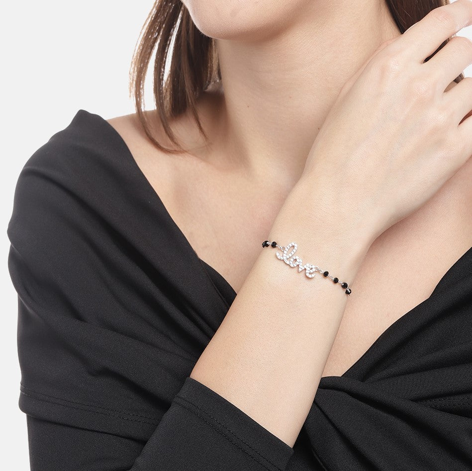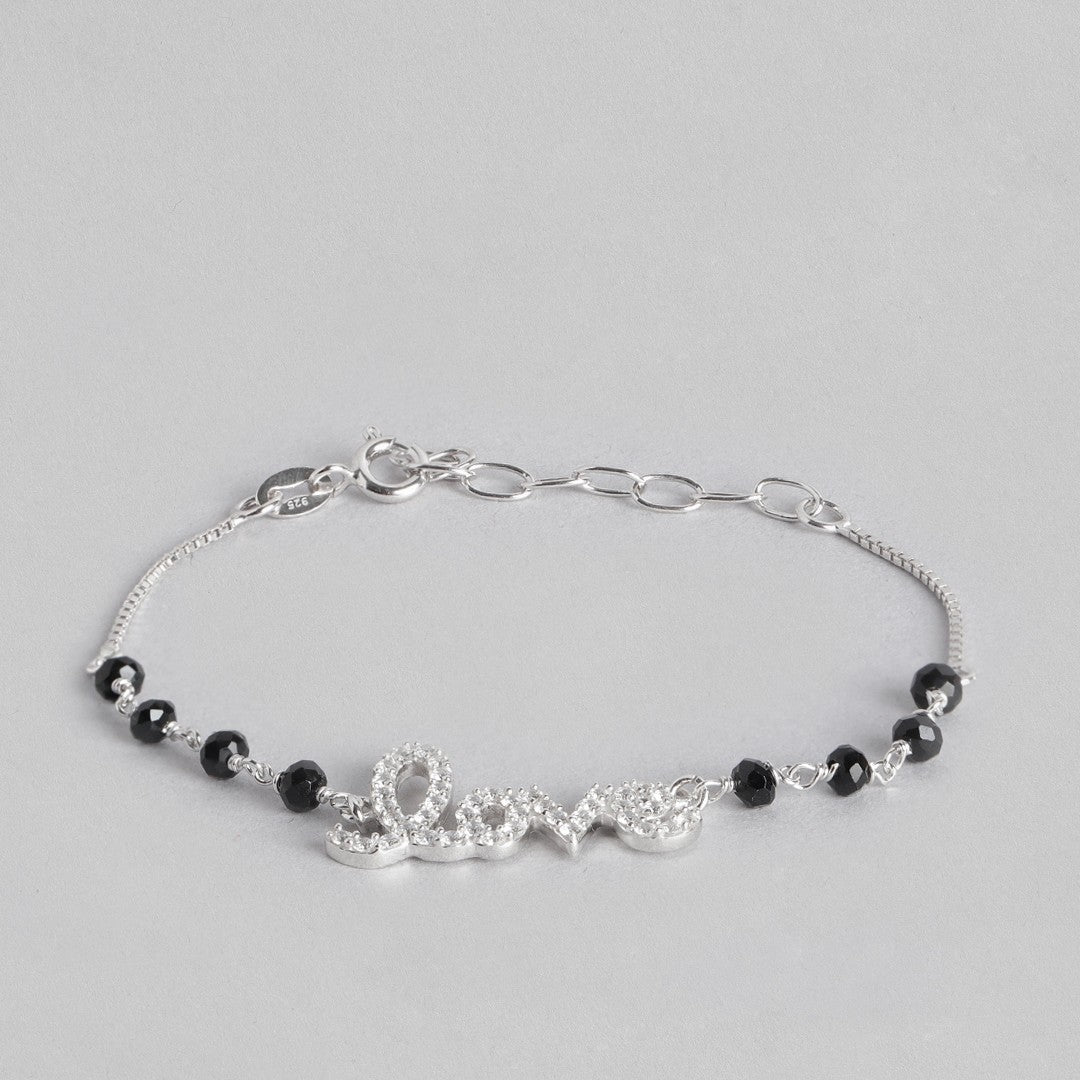 Product Description:- Zavya presents to you a sterling silver mangalsutra bracelet with the infinite sign with hanging white stone as the centerpiece. The embellishments up the beauty of the symbol, reminding you that anything is possible!