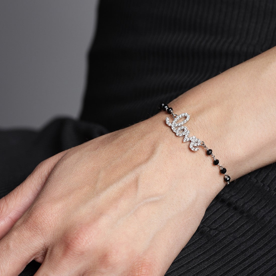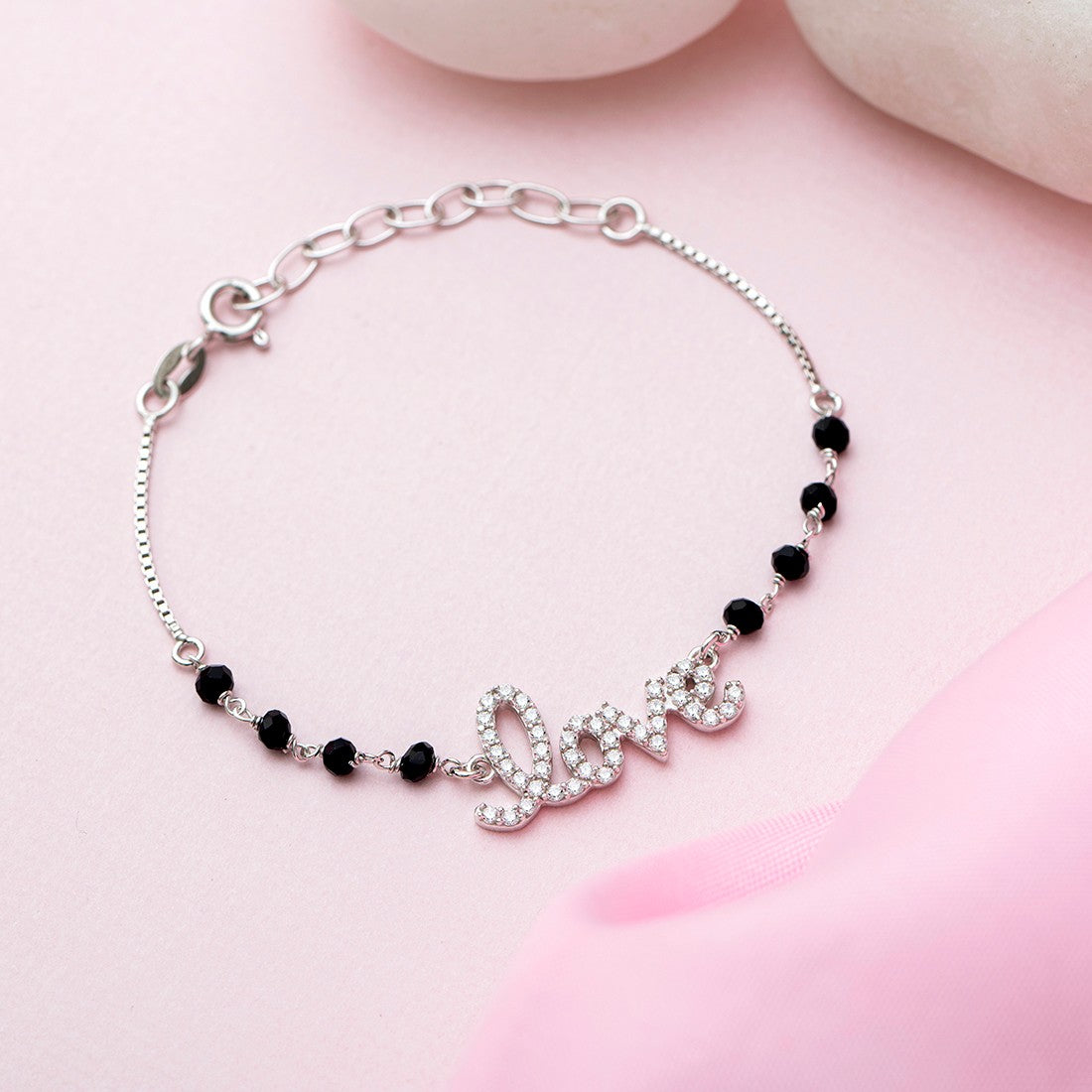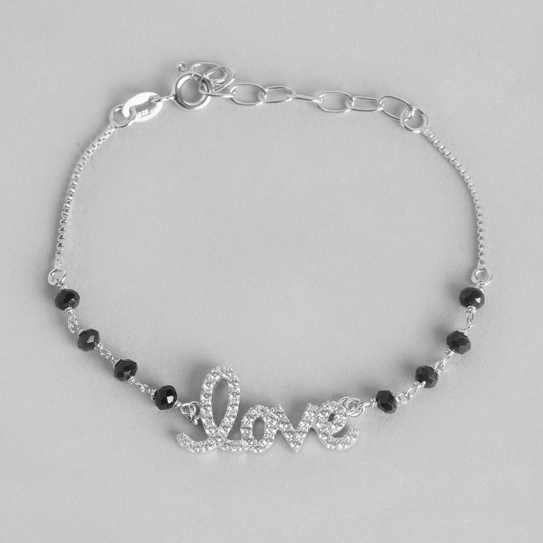 Product Description:- Zavya presents to you a sterling silver mangalsutra bracelet with the infinite sign with hanging white stone as the centerpiece. The embellishments up the beauty of the symbol, reminding you that anything is possible!