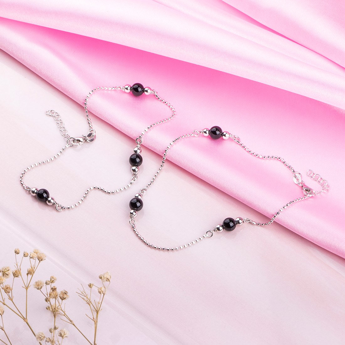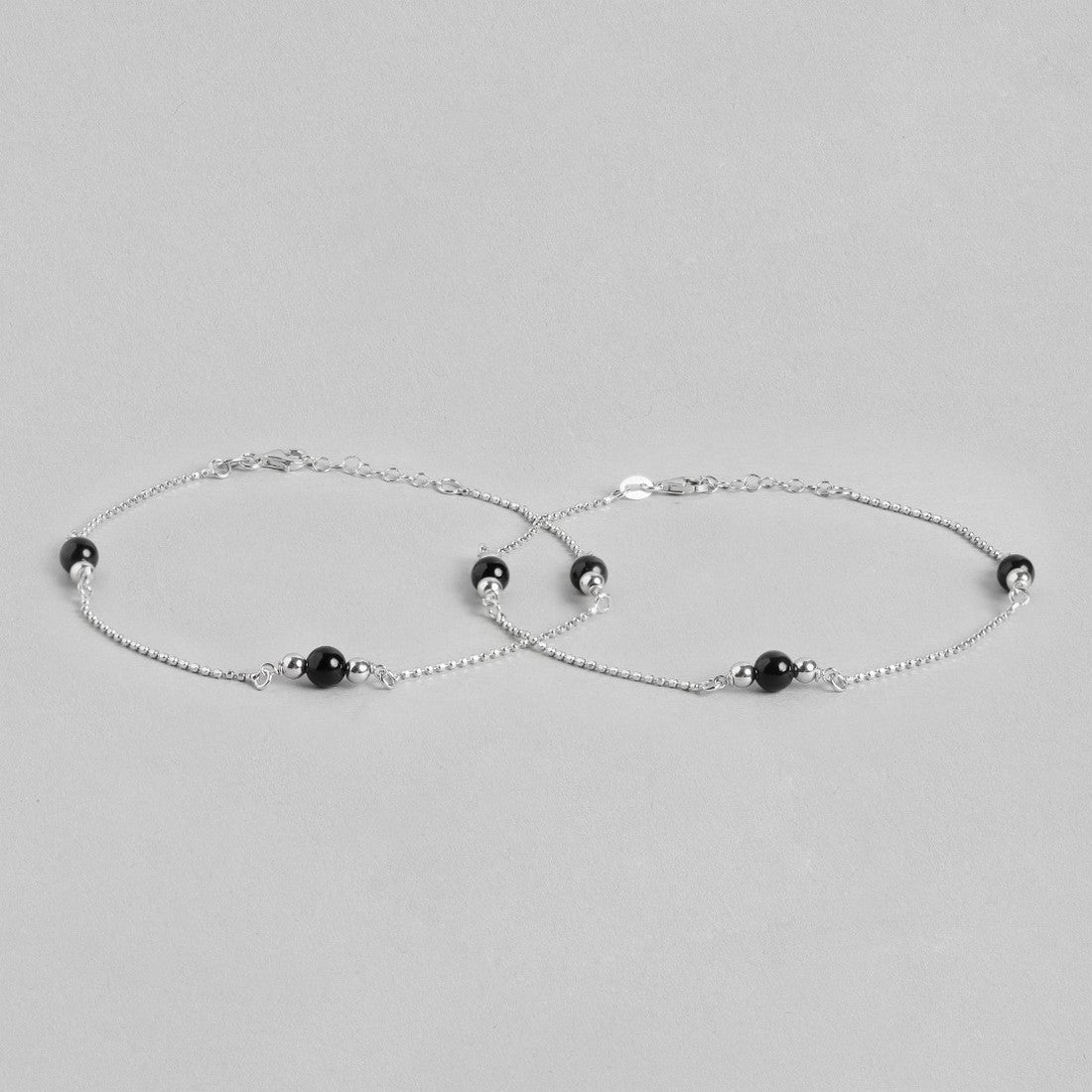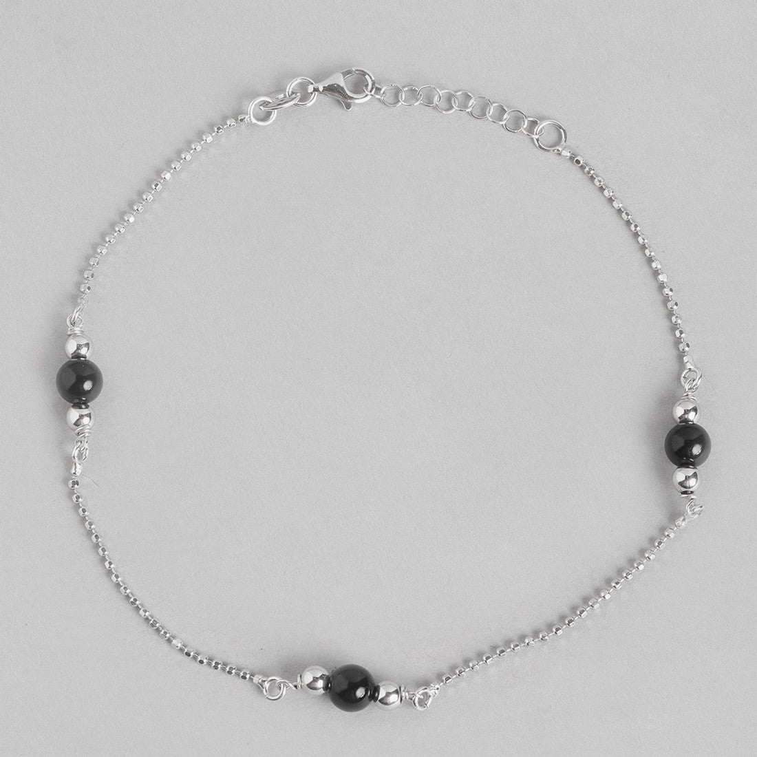 Black Pearl Rhodium Plated 925 Sterling Silver Chained Anklet