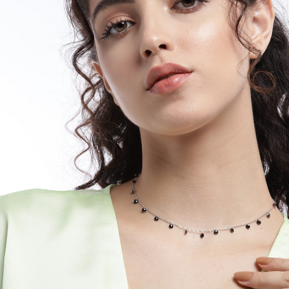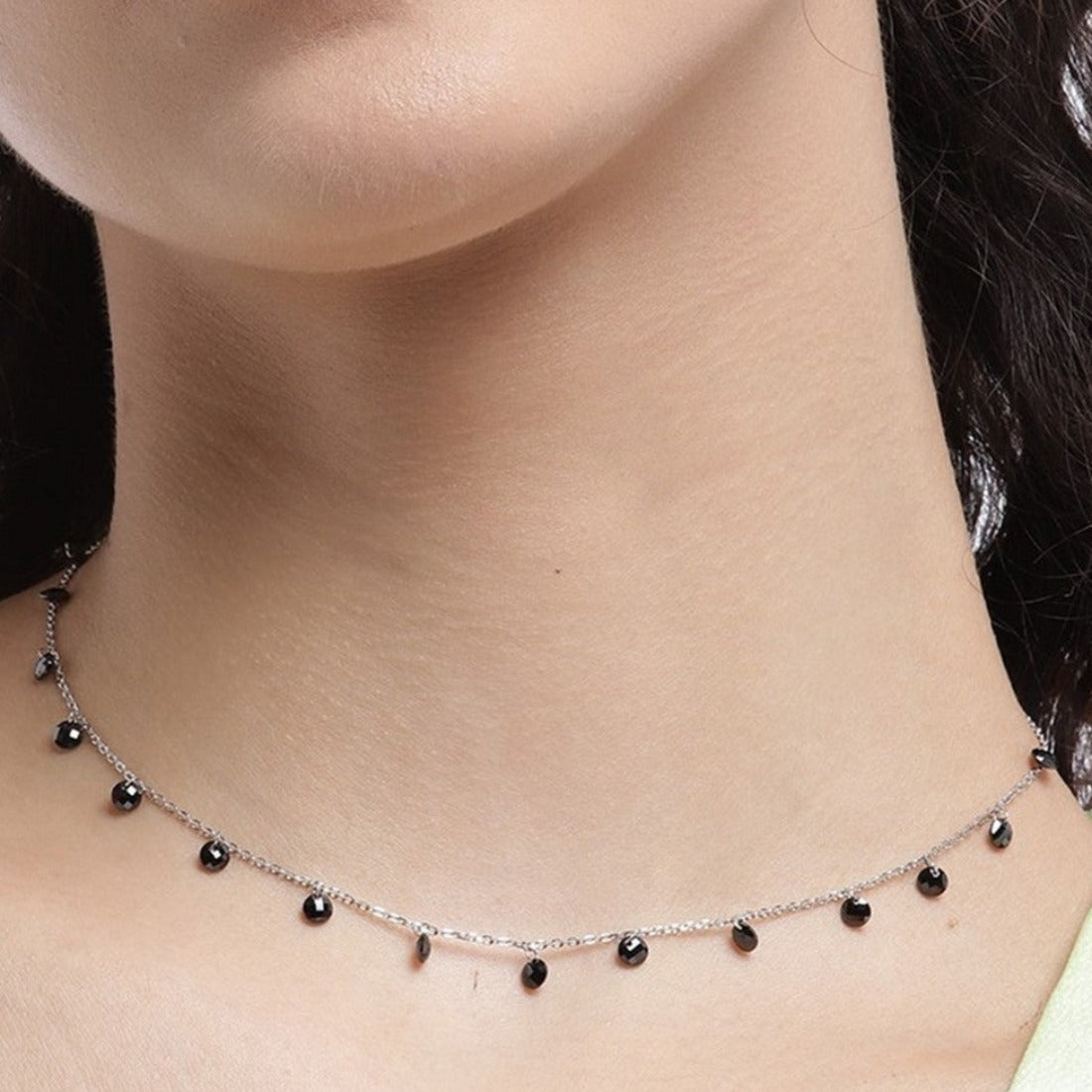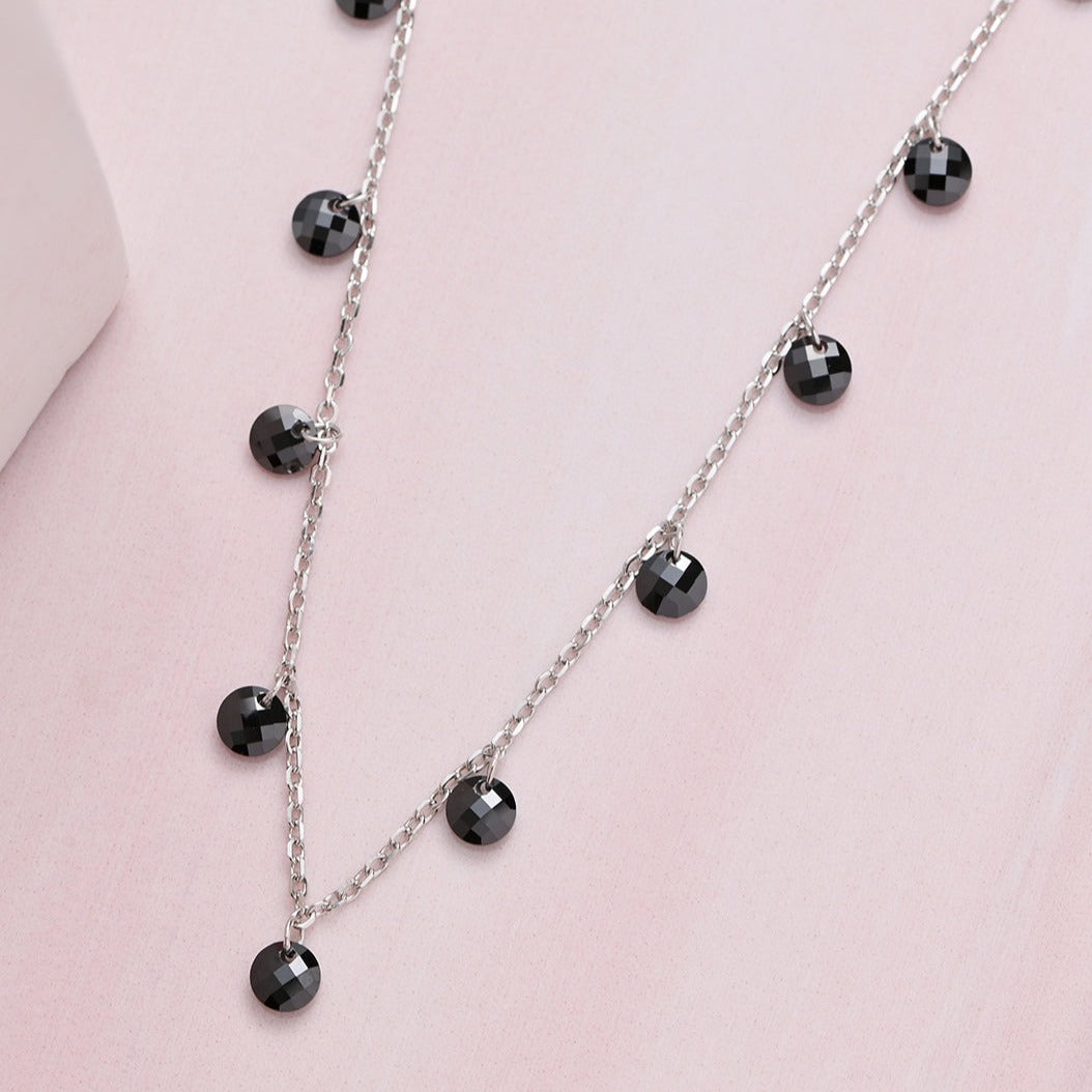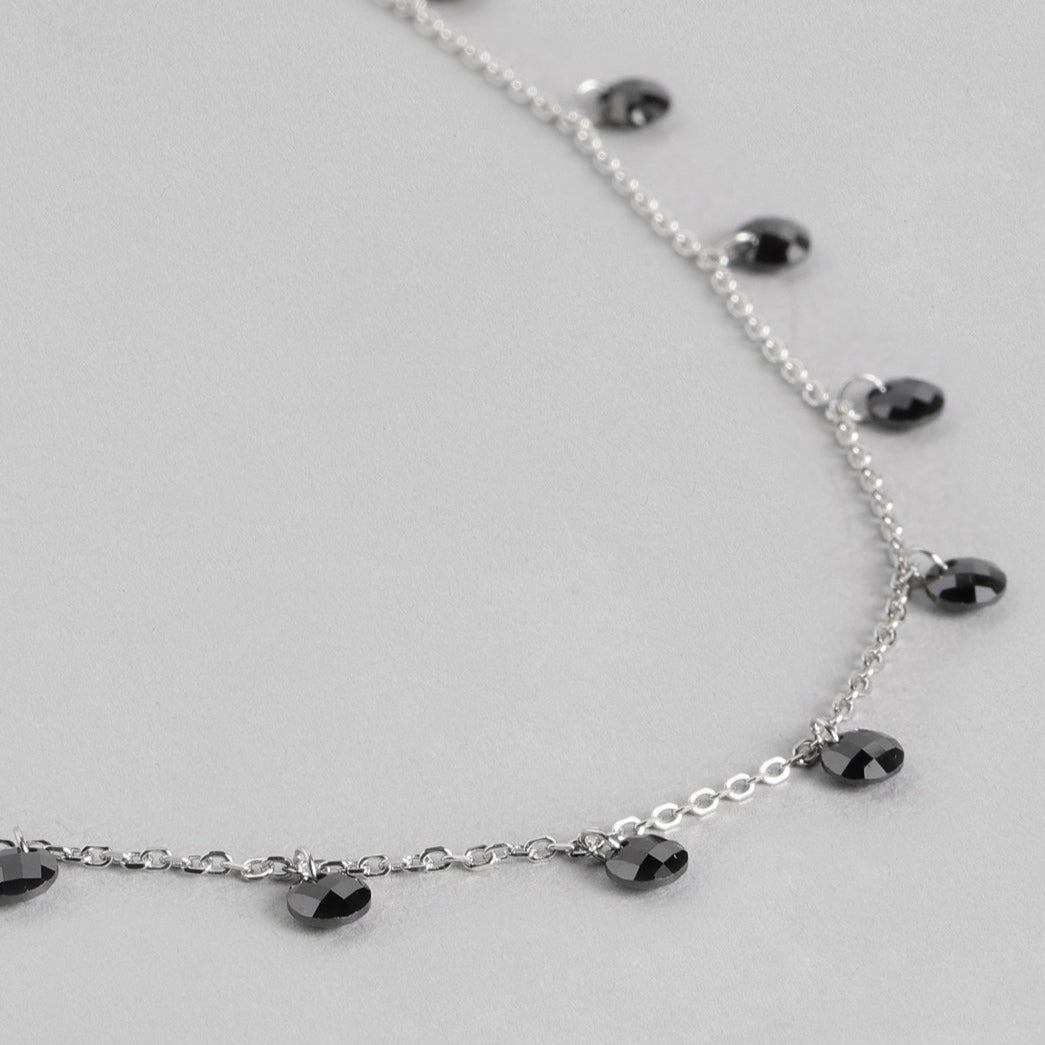 Black Rose Drops 925 Sterling Silver CZ Necklace