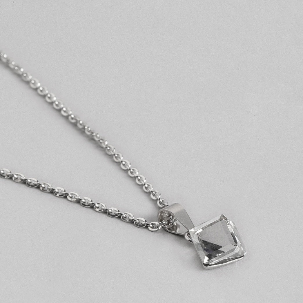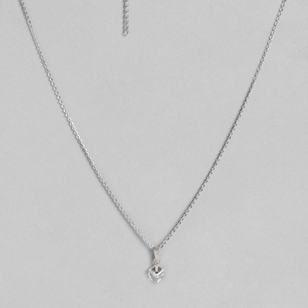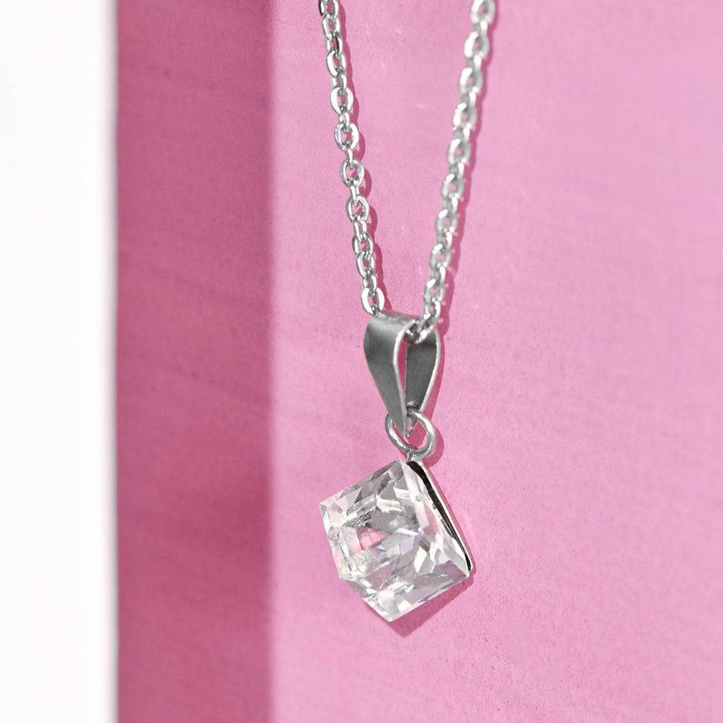 White Solitaire Cube 925 Sterling Silver CZ Necklace