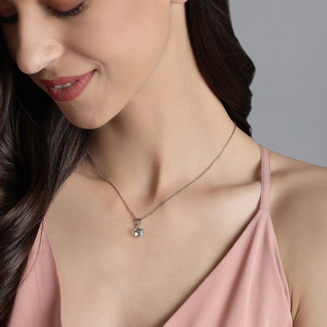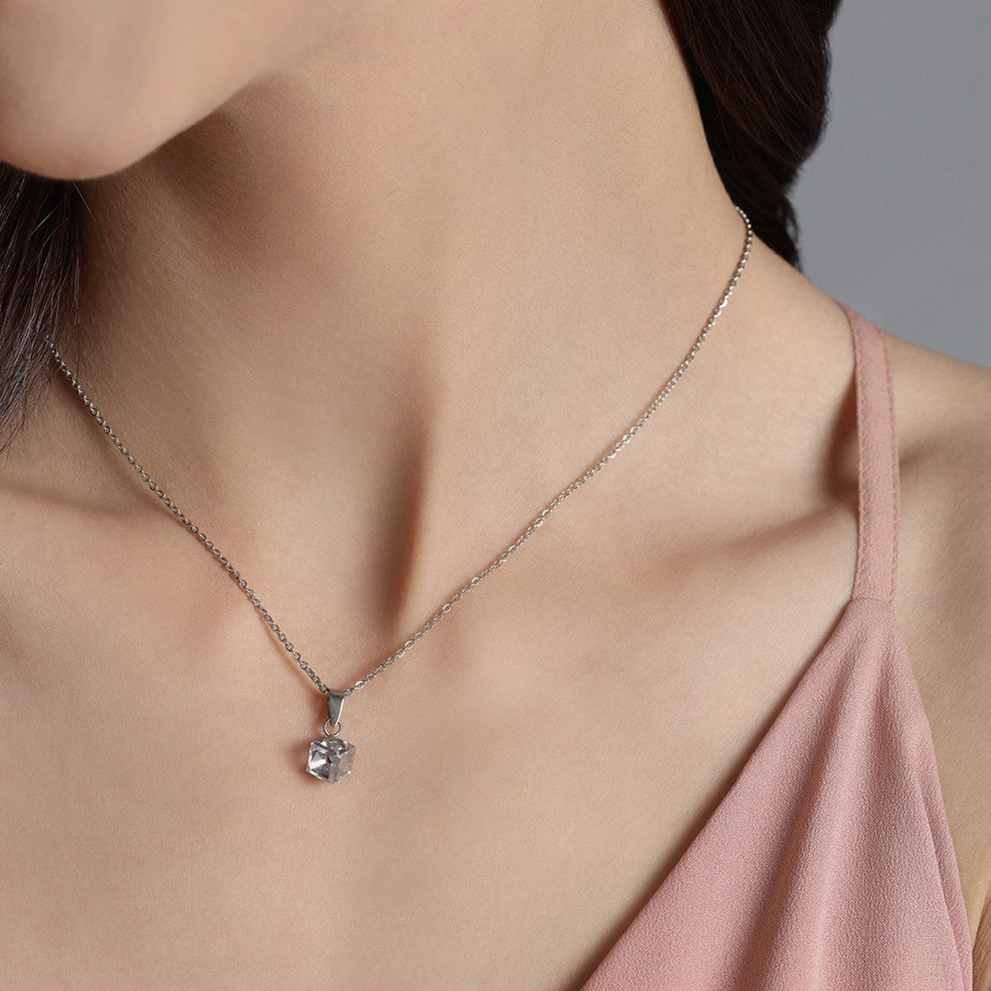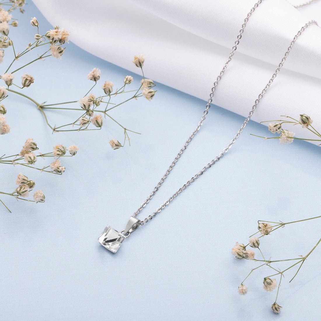 White Solitaire Cube 925 Sterling Silver CZ Necklace
