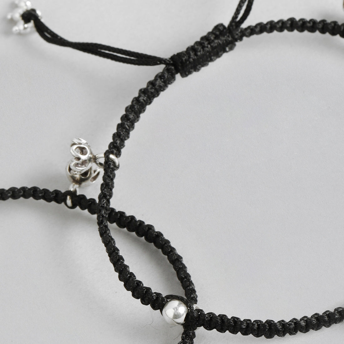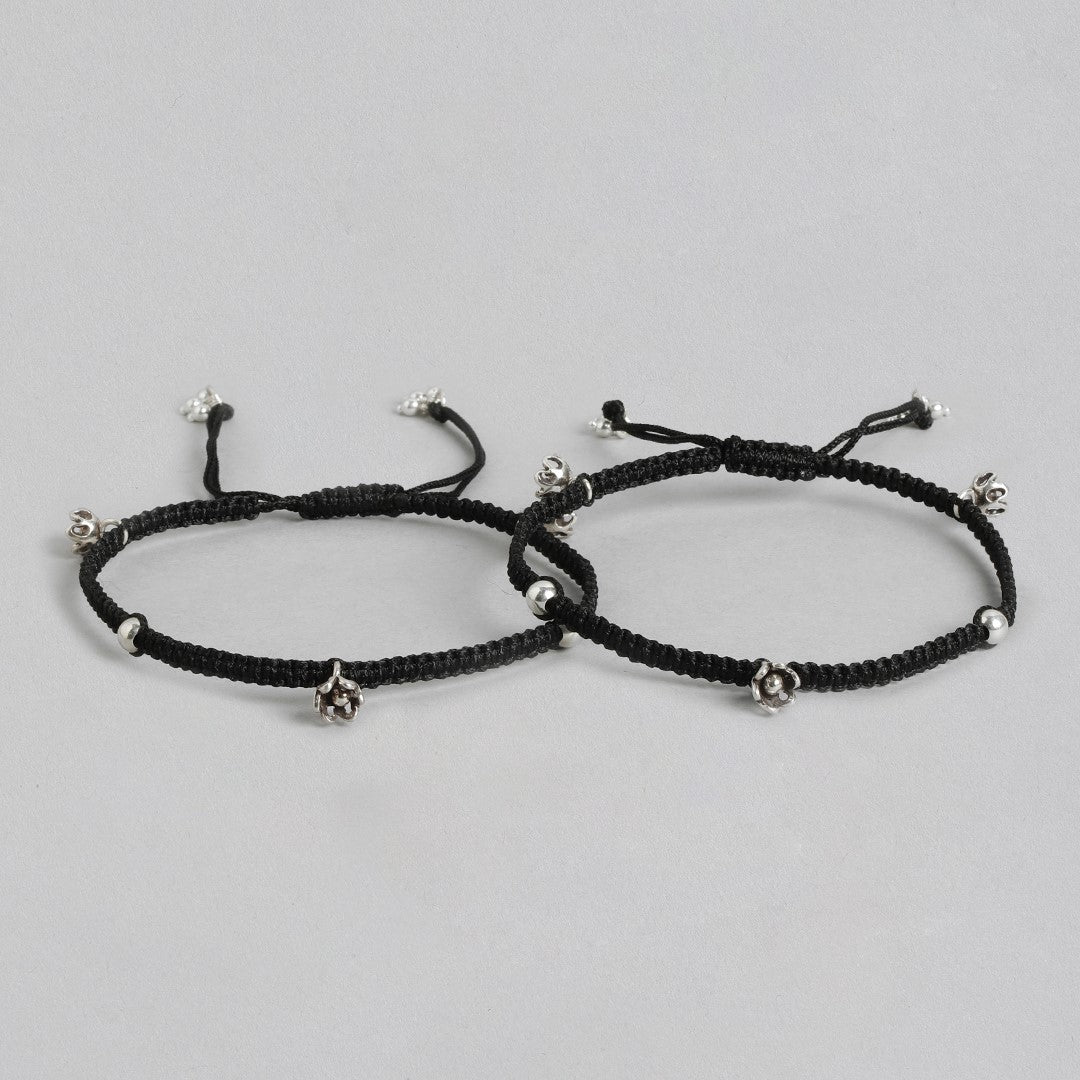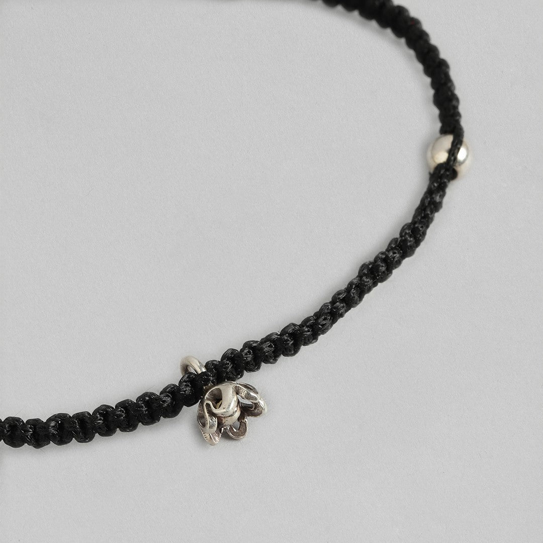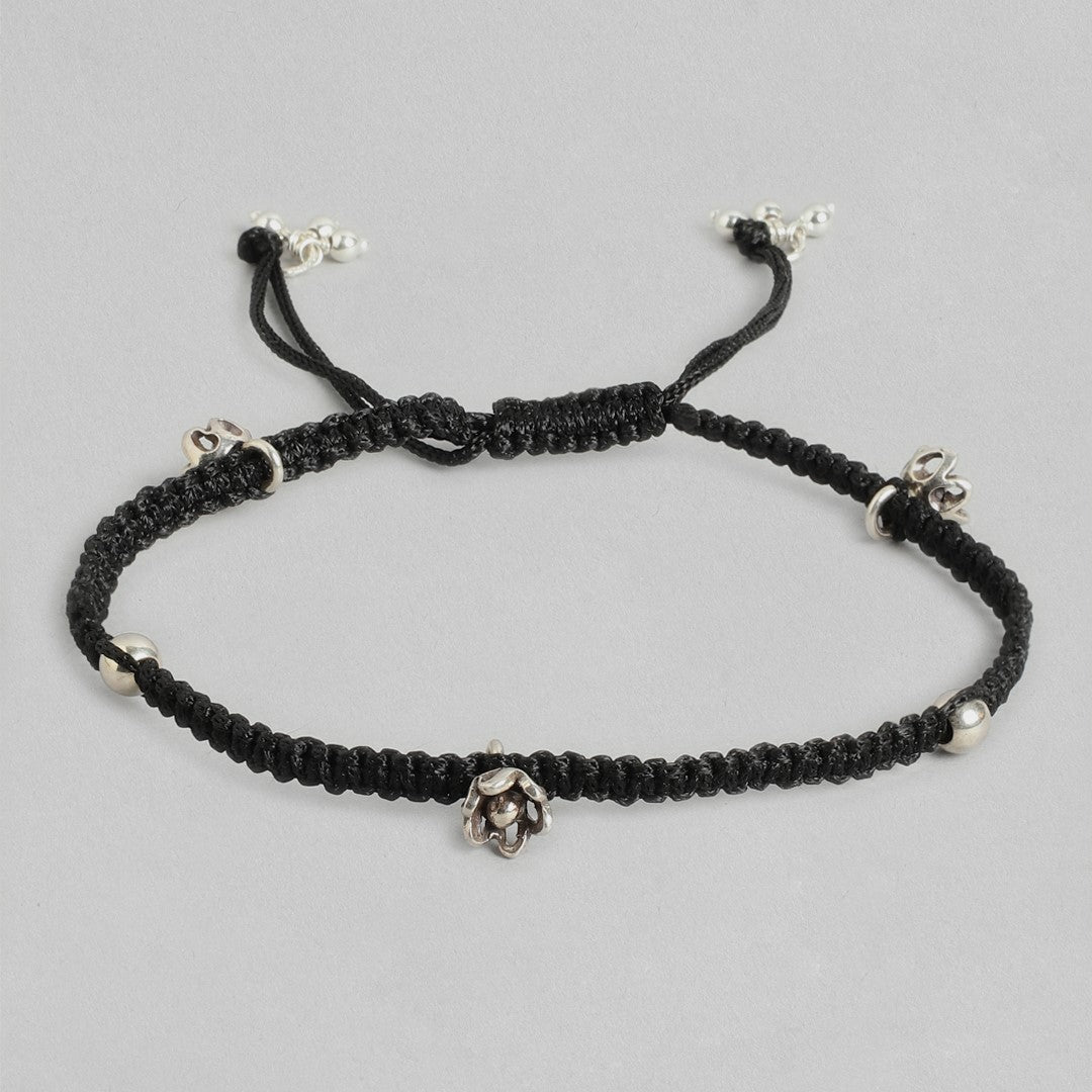 Black Thread with Floral Charms 925 Silver Anklet