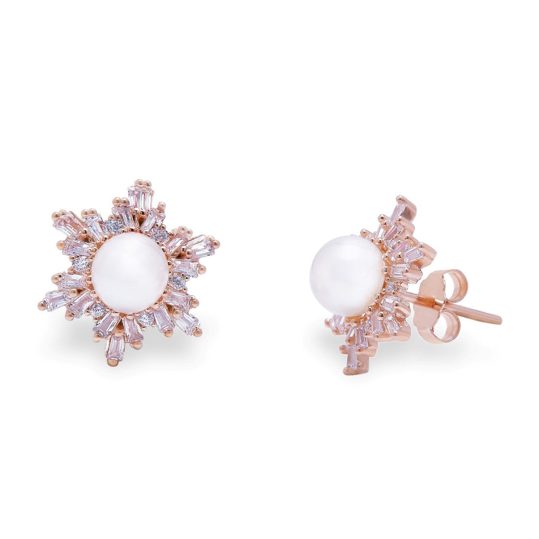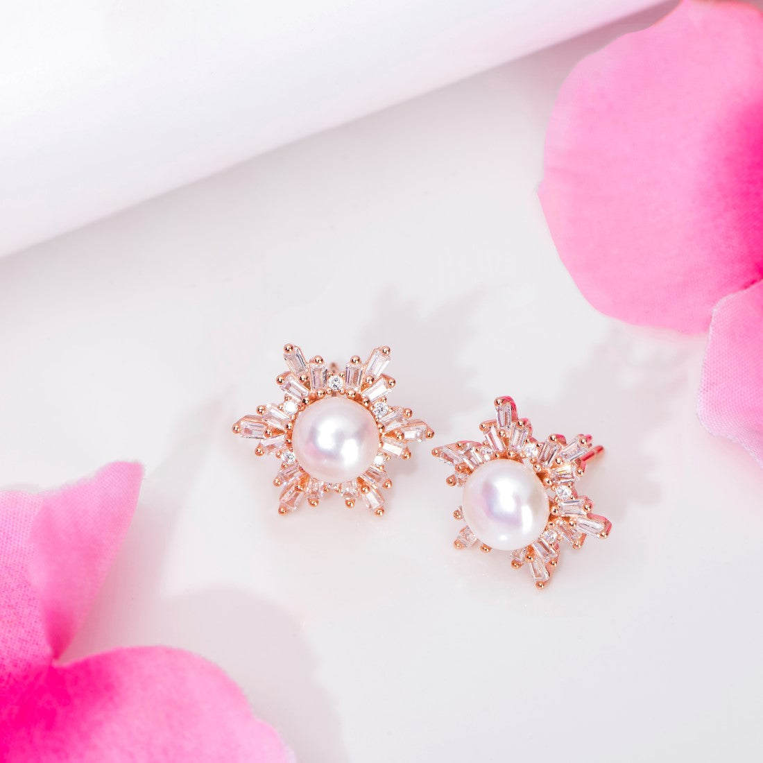 Blooming Petals 925 Sterling Silver Rose Gold-Plated Flower Earring