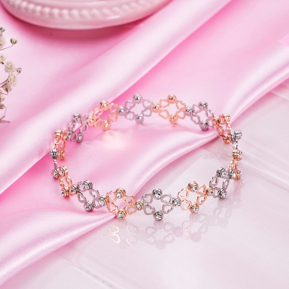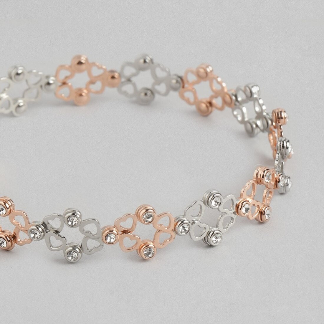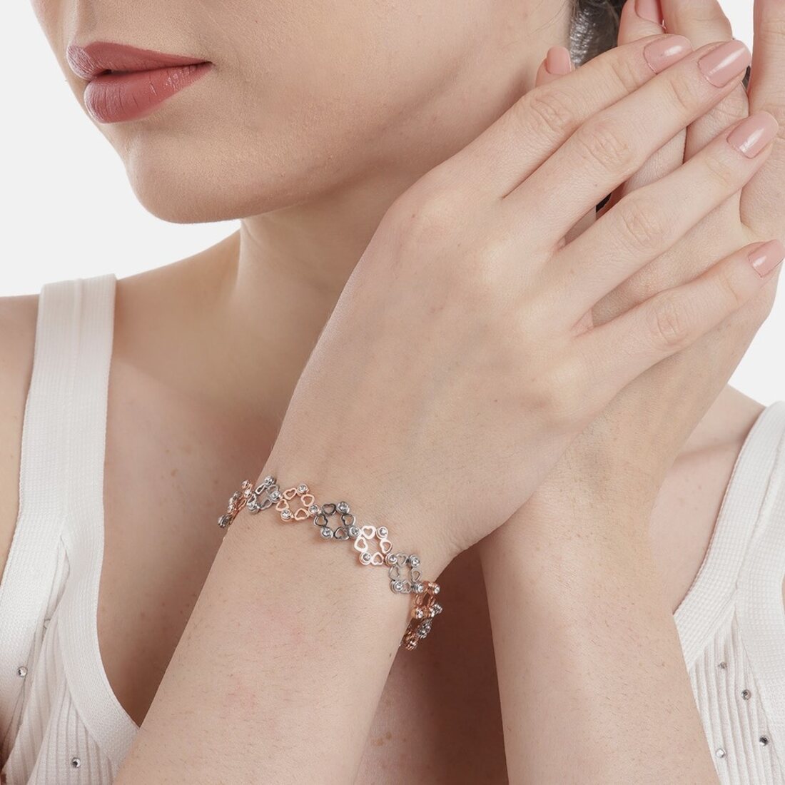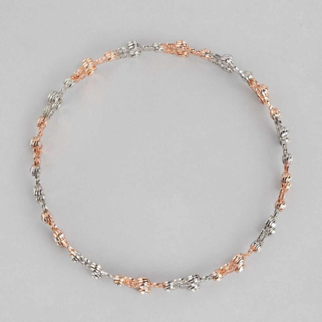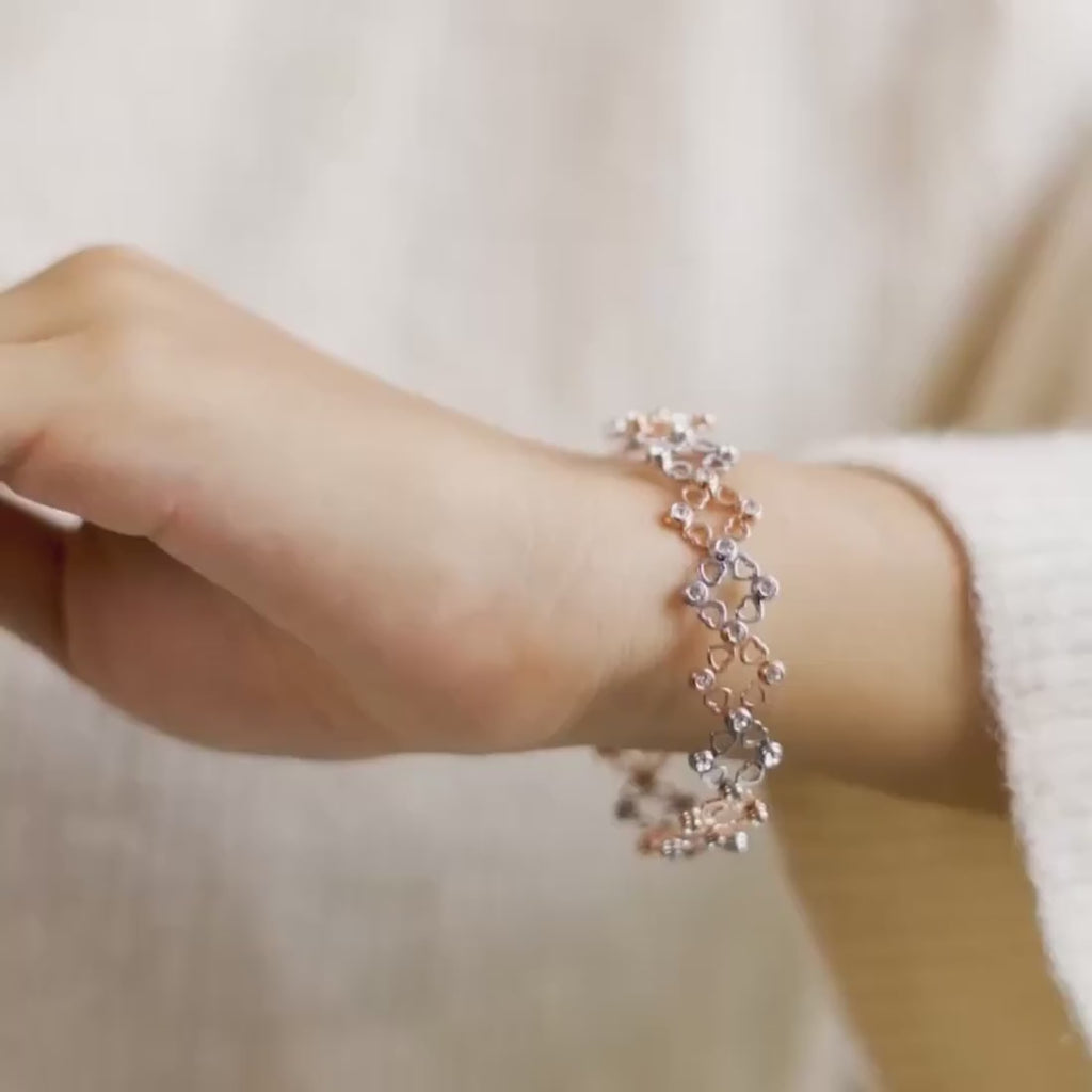 Blossoming Dual-Tone CZ Elegance 925 Sterling Silver Ring Bracelet