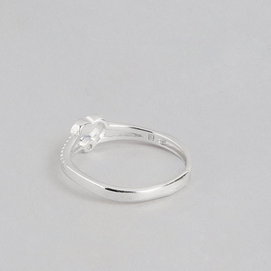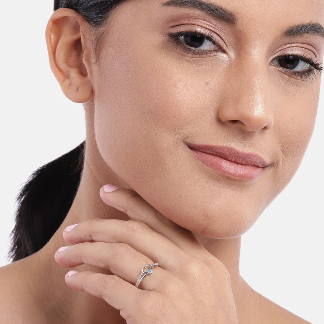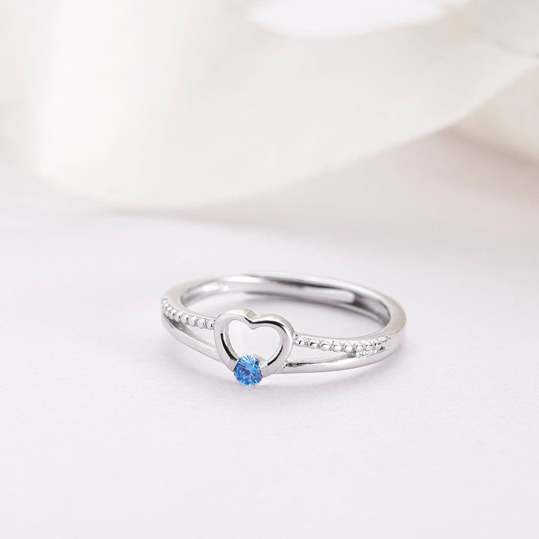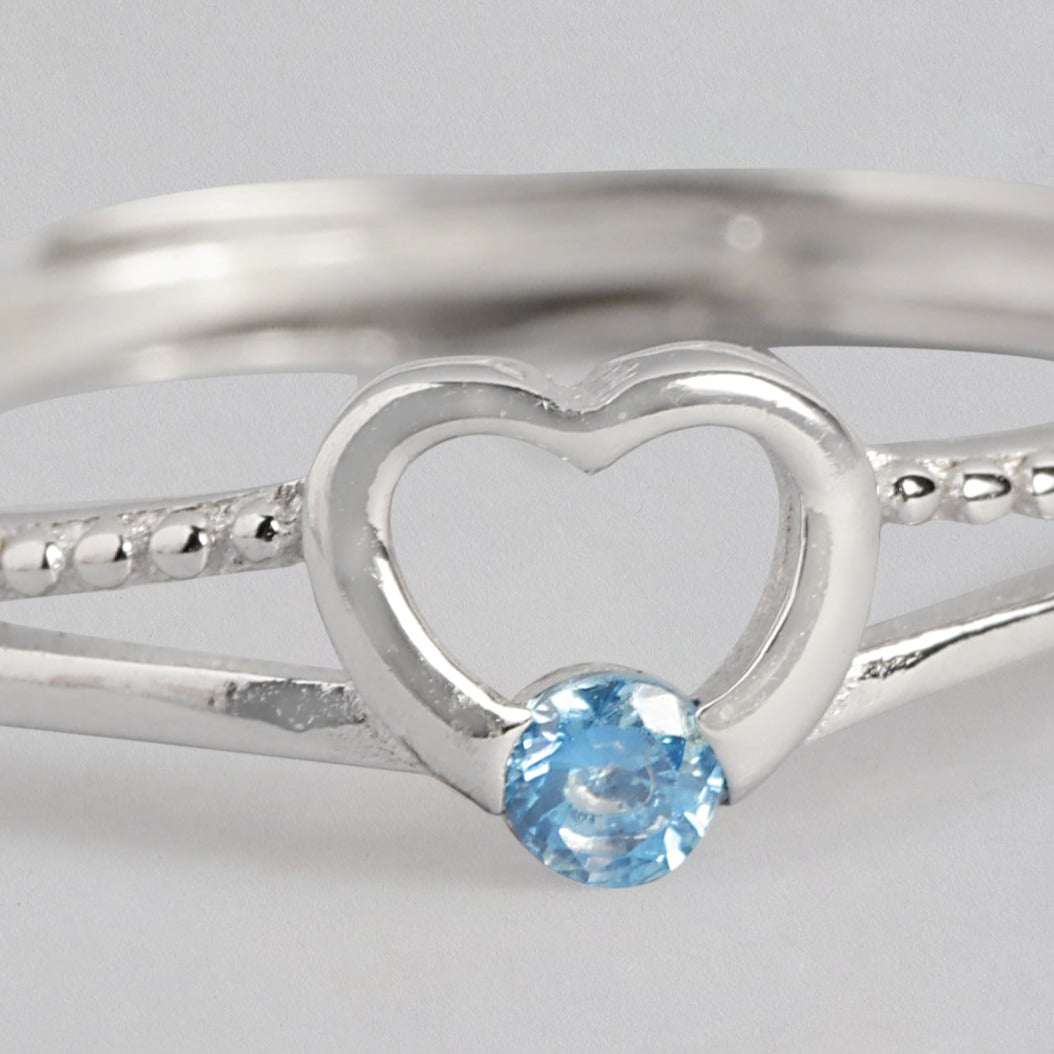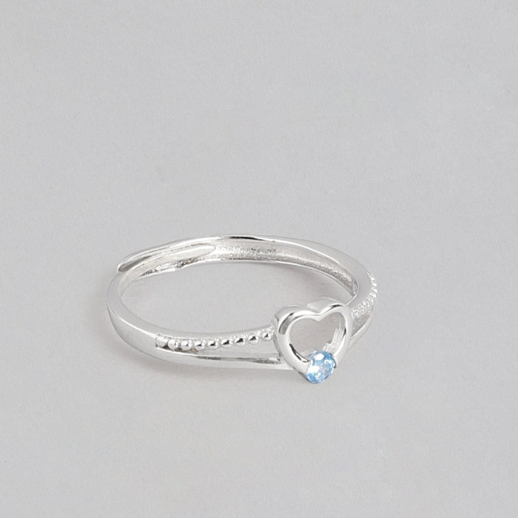 Blue Heart CZ 925 Sterling Silver Ring for Women (Adjustable)