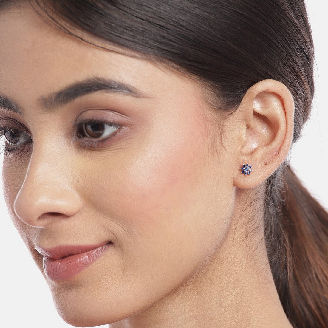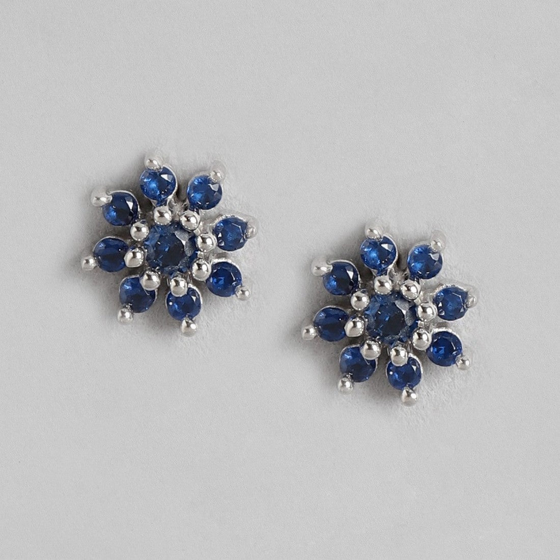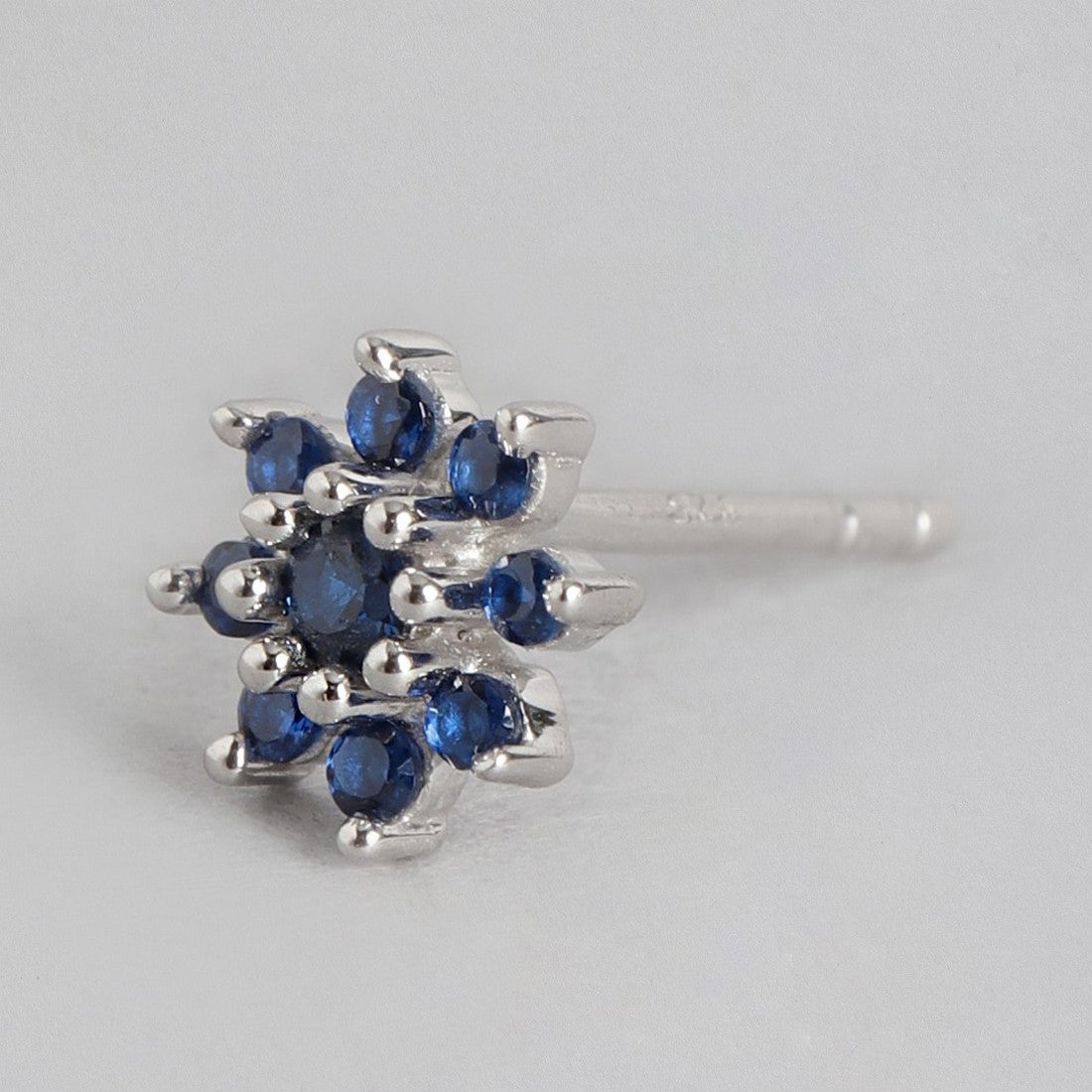Blue Stones Star Rhodium Plated 925 Sterling Silver Stud