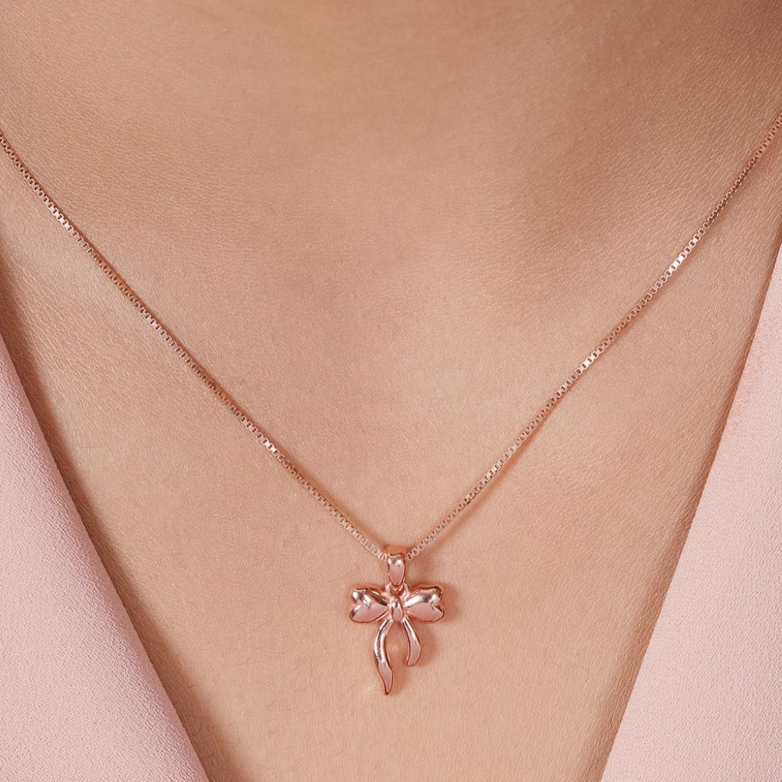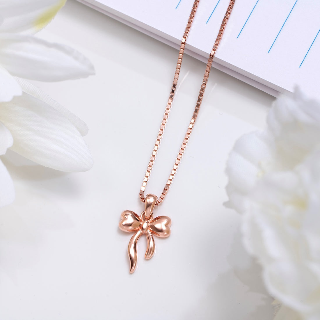 Bow of Elegance Rose Gold Plated 925 Sterling Silver Pendant
