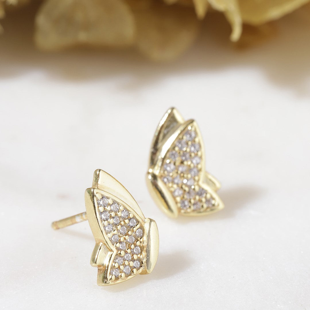 Butterfly CZ Gold Plated 925 Sterling Silver Stud
