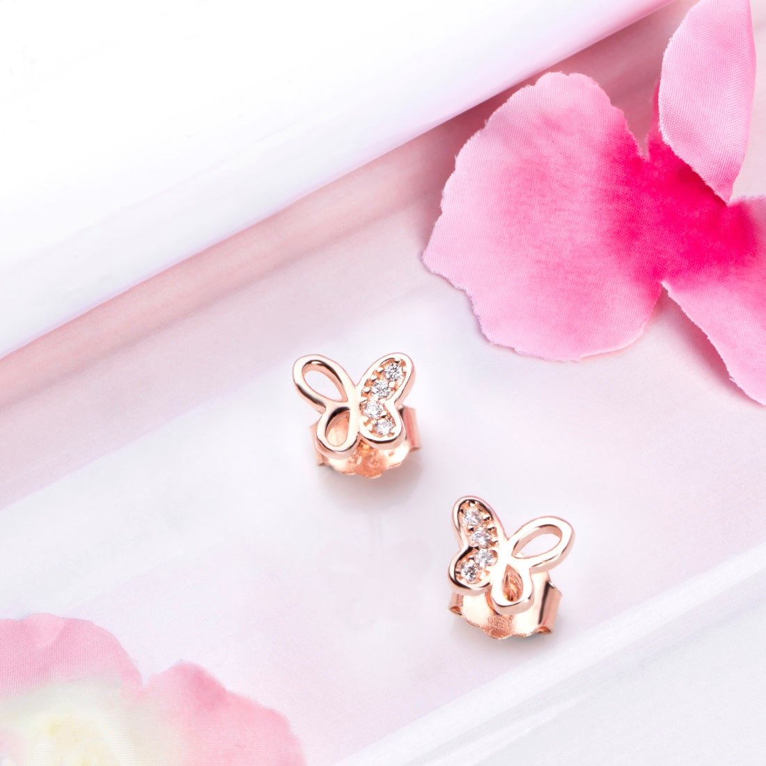 Butterfly Dreams Rose Gold-Plated CZ 925 Sterling Silver Earrings