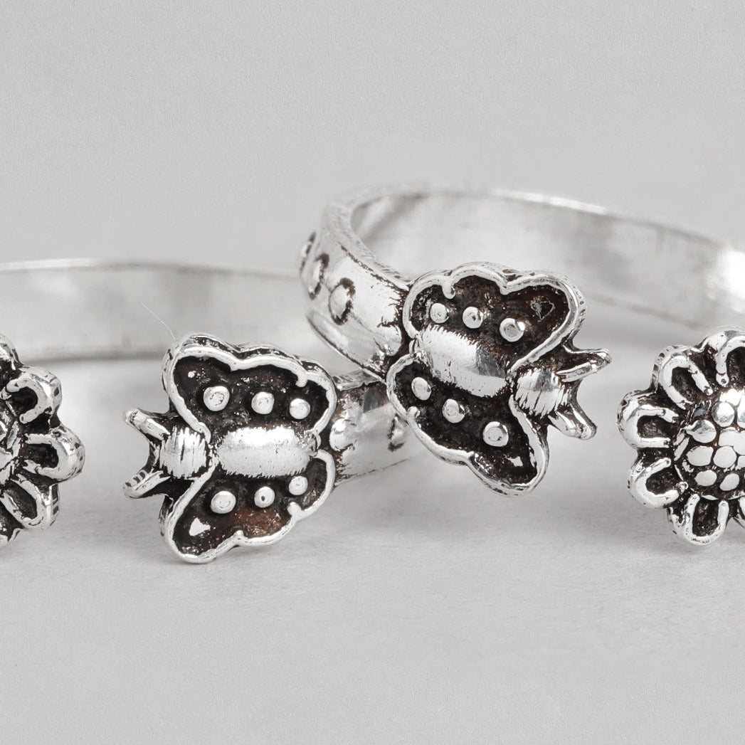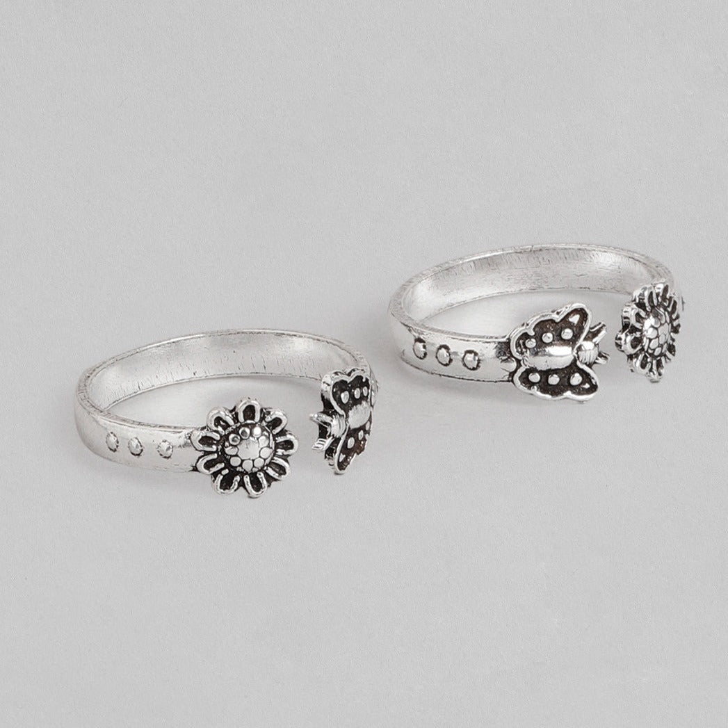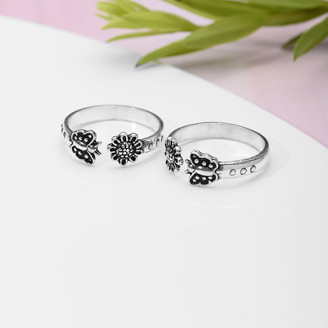 Product Description:- With a flirty blend of butterfly and flower evoking the princess look, these toe rings make your feet look all the more pretty. Allow them to adorn your toes as you embark to fulfil your dreams.