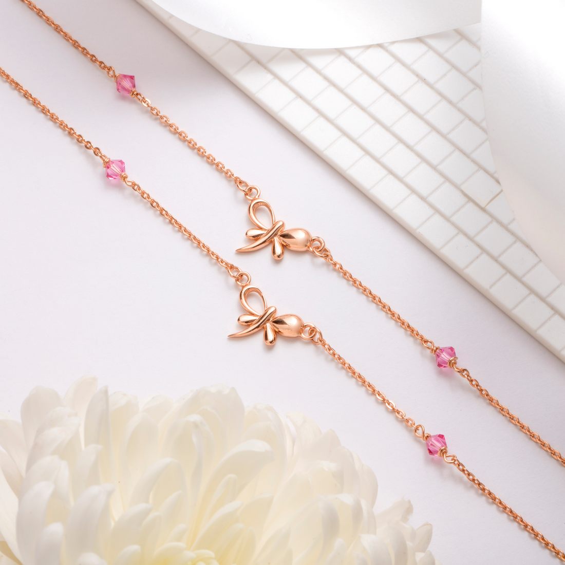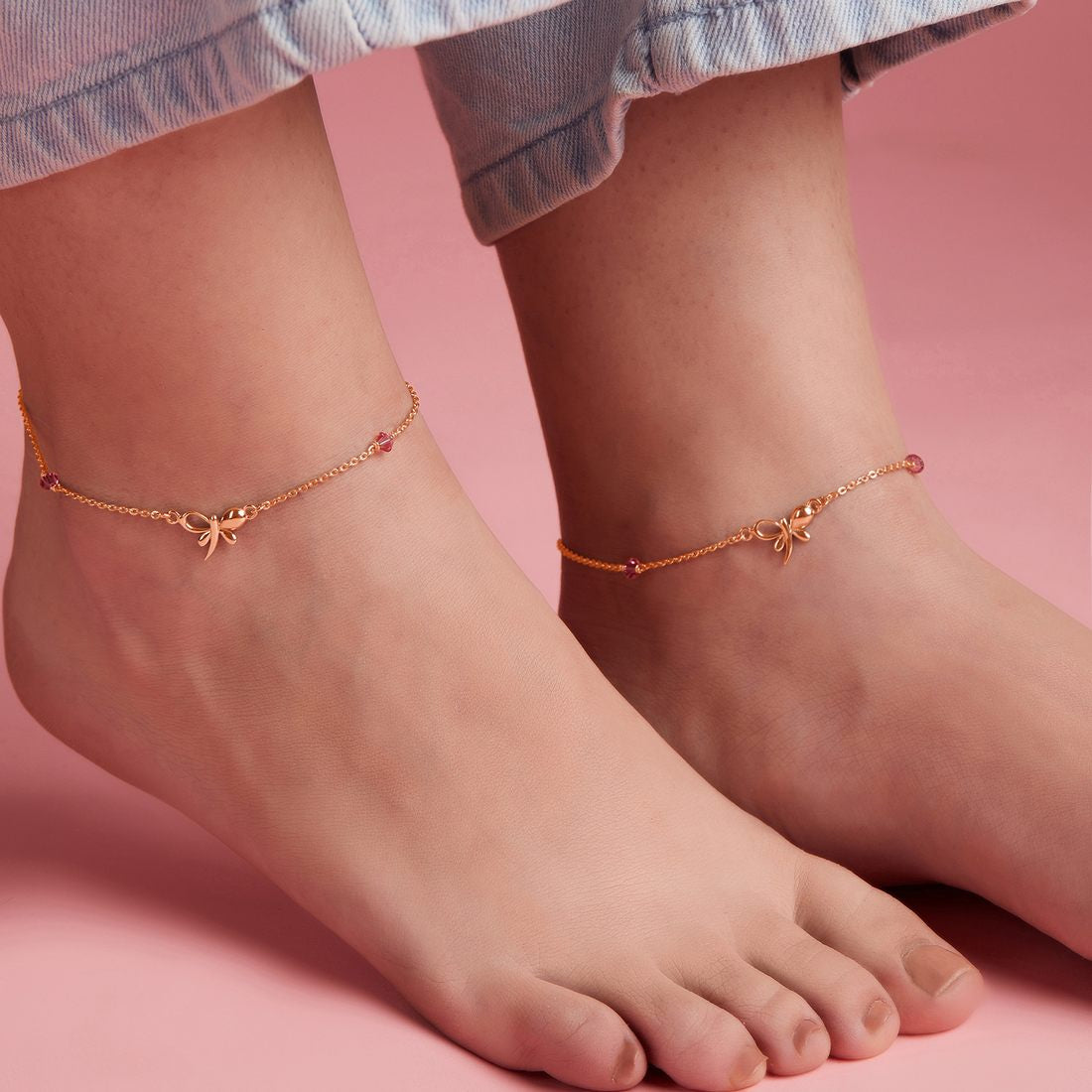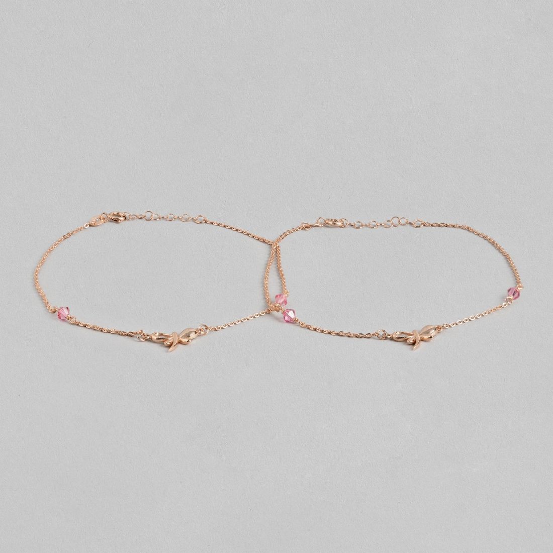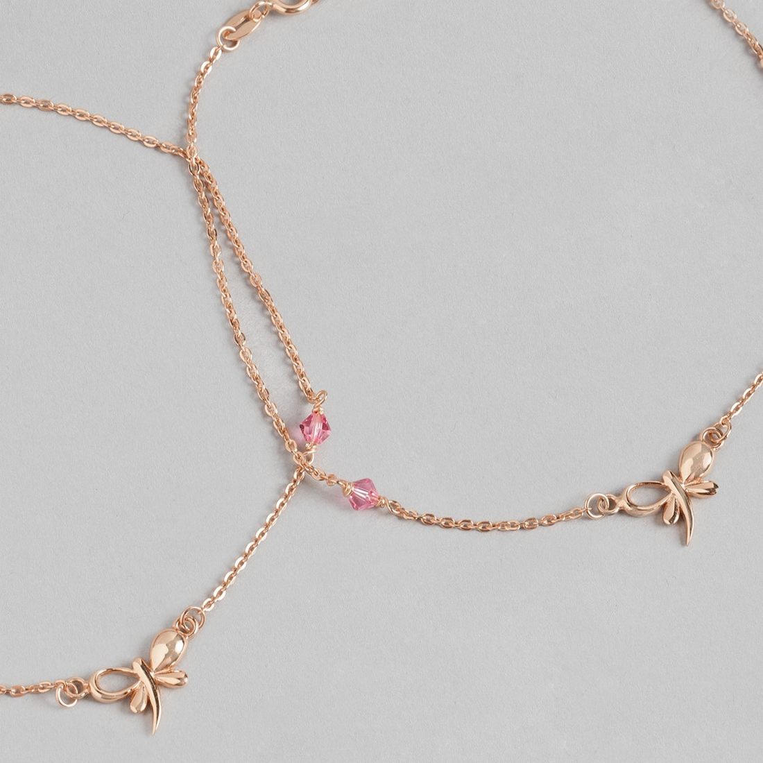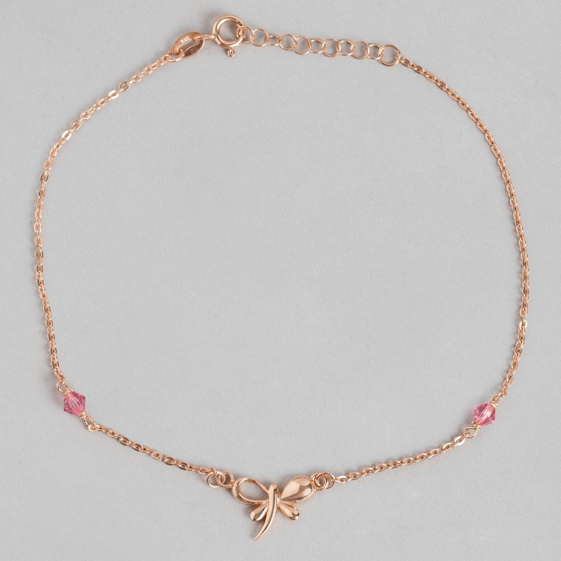 Butterfly Rose-Gold Plated CZ 925 Sterling Silver Chained Anklet