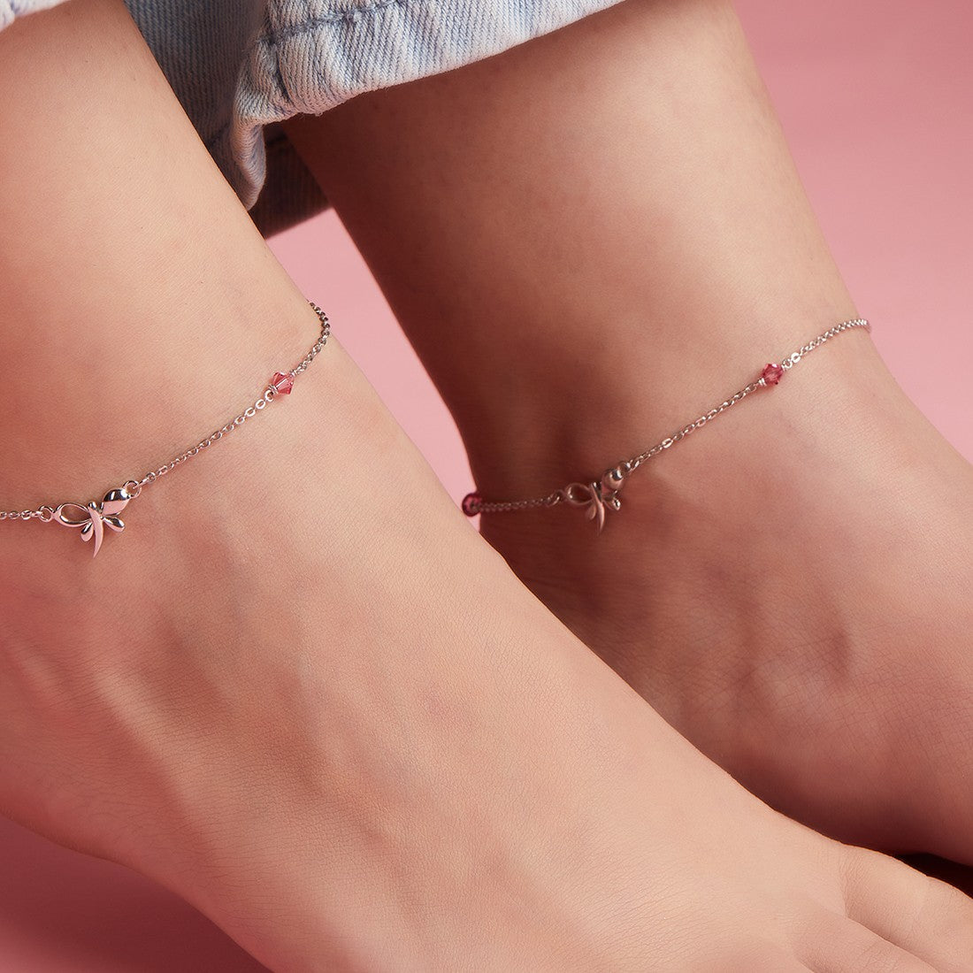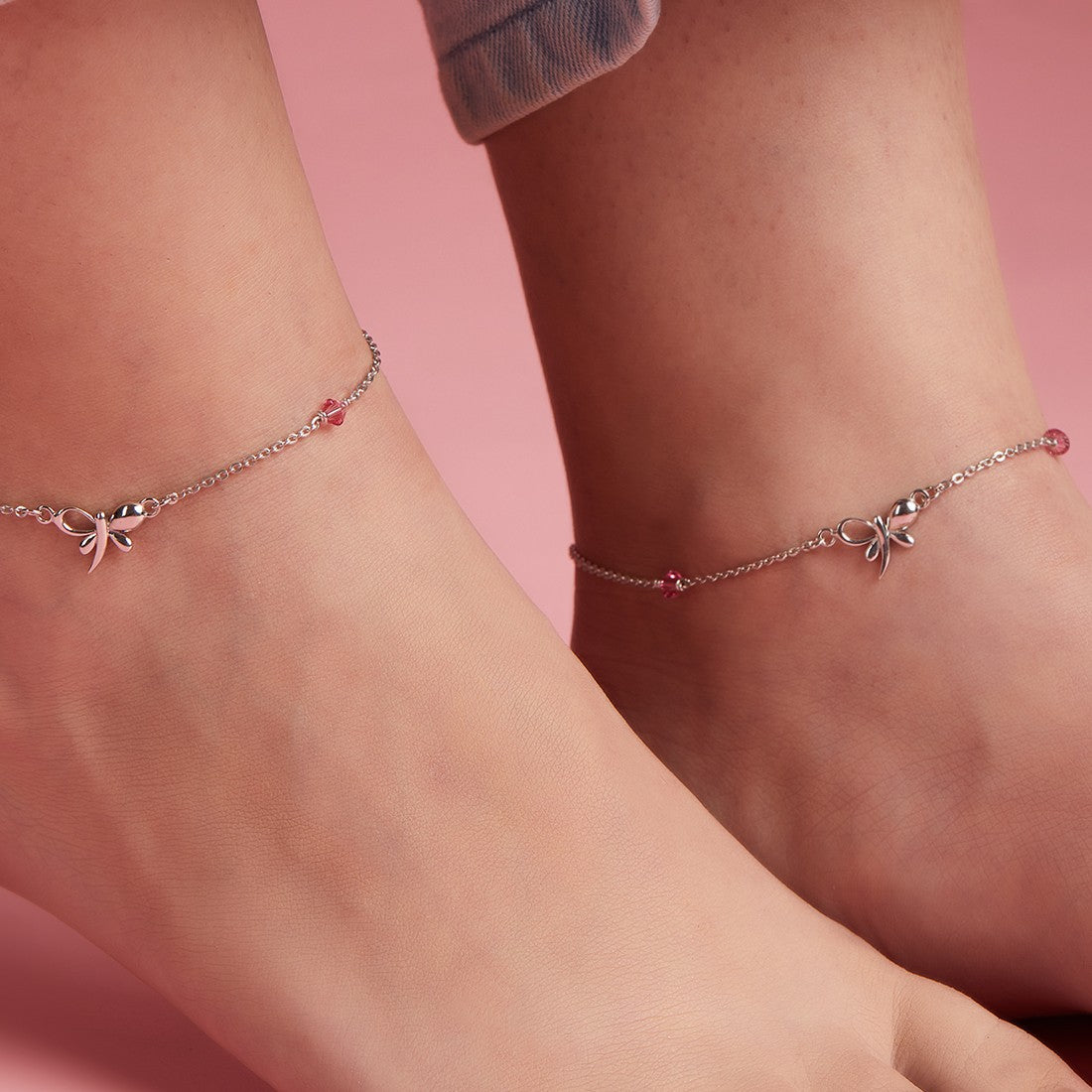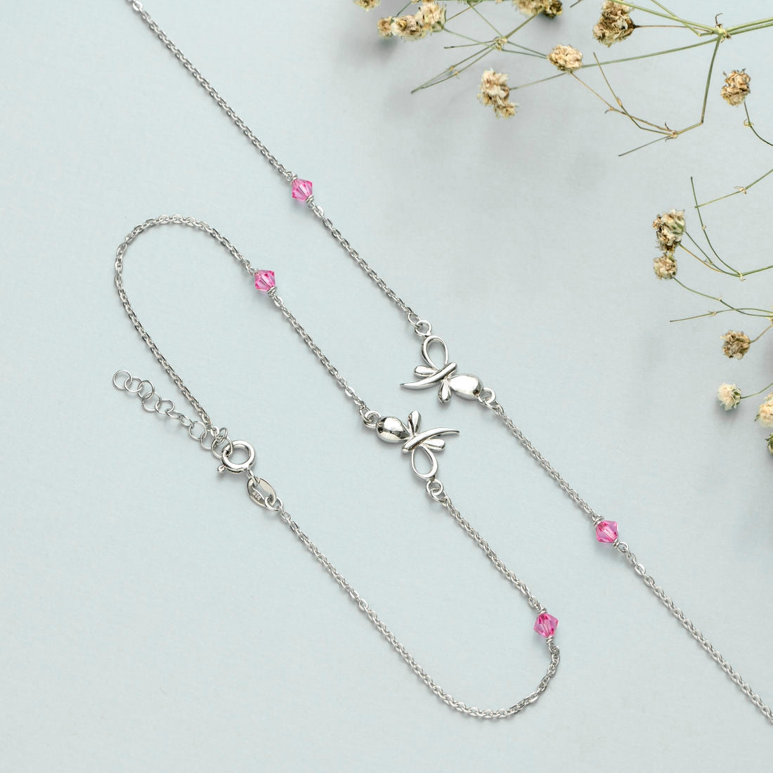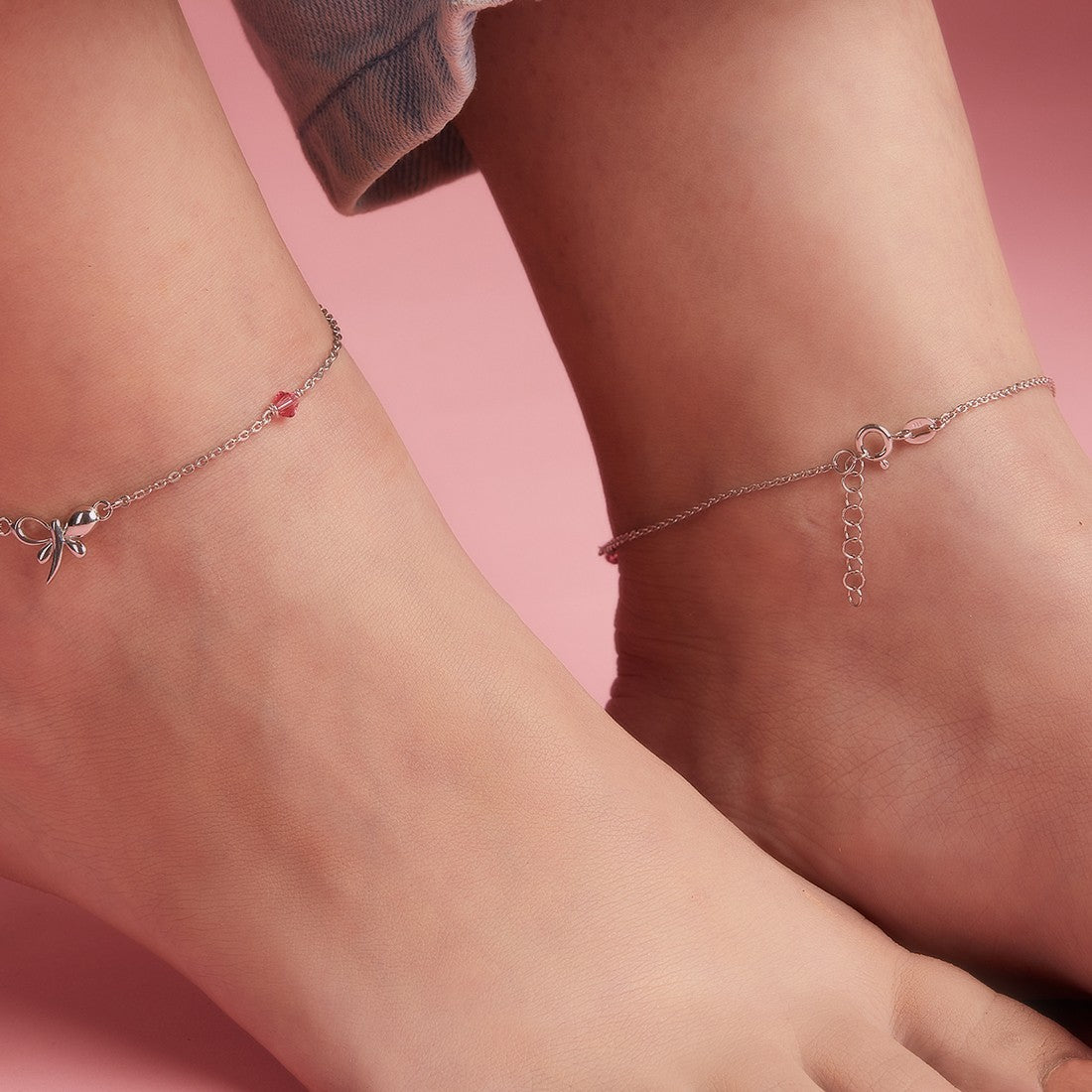 Butterfly with studded stone 925 Sterling Silver Anklets