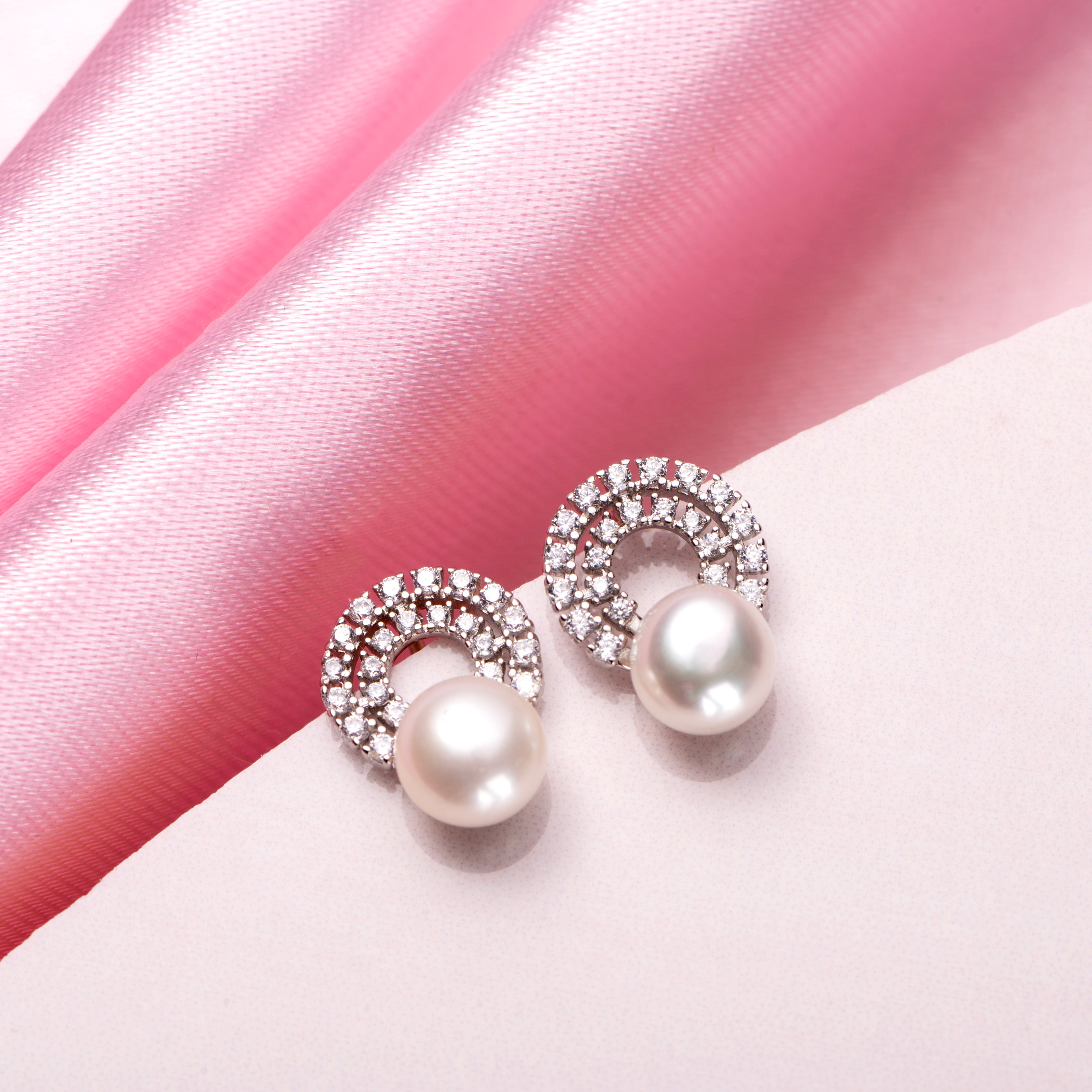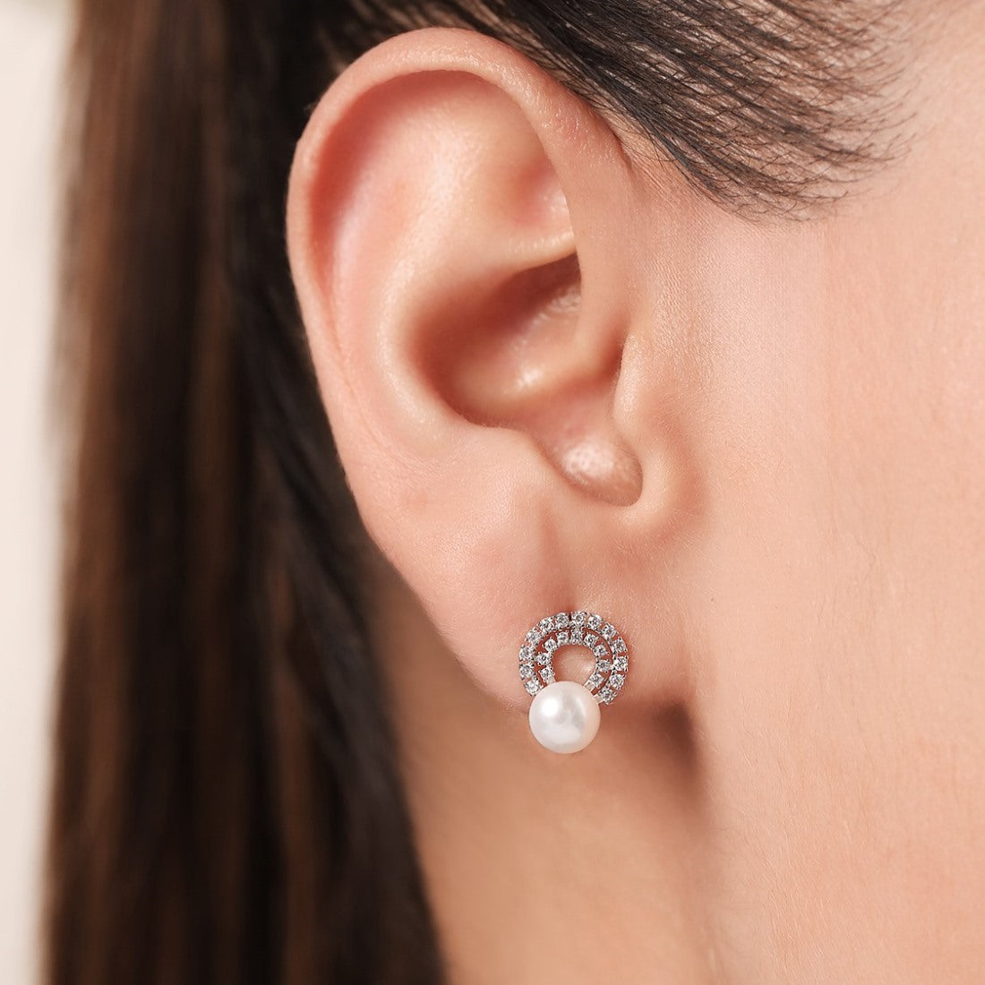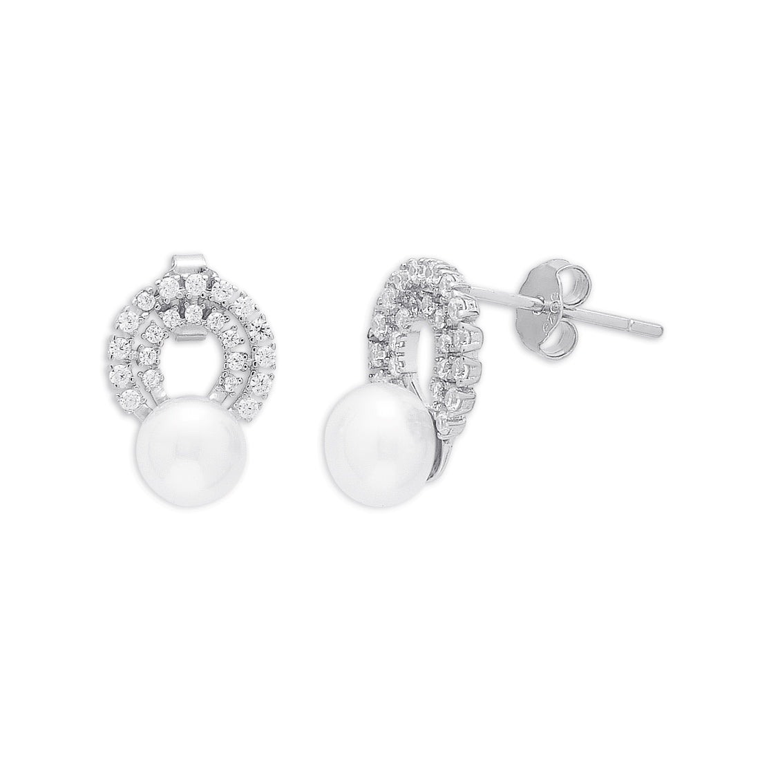 Celestial Pearl Elegance Rhodium-Plated 925 Sterling Silver Circle Earrings