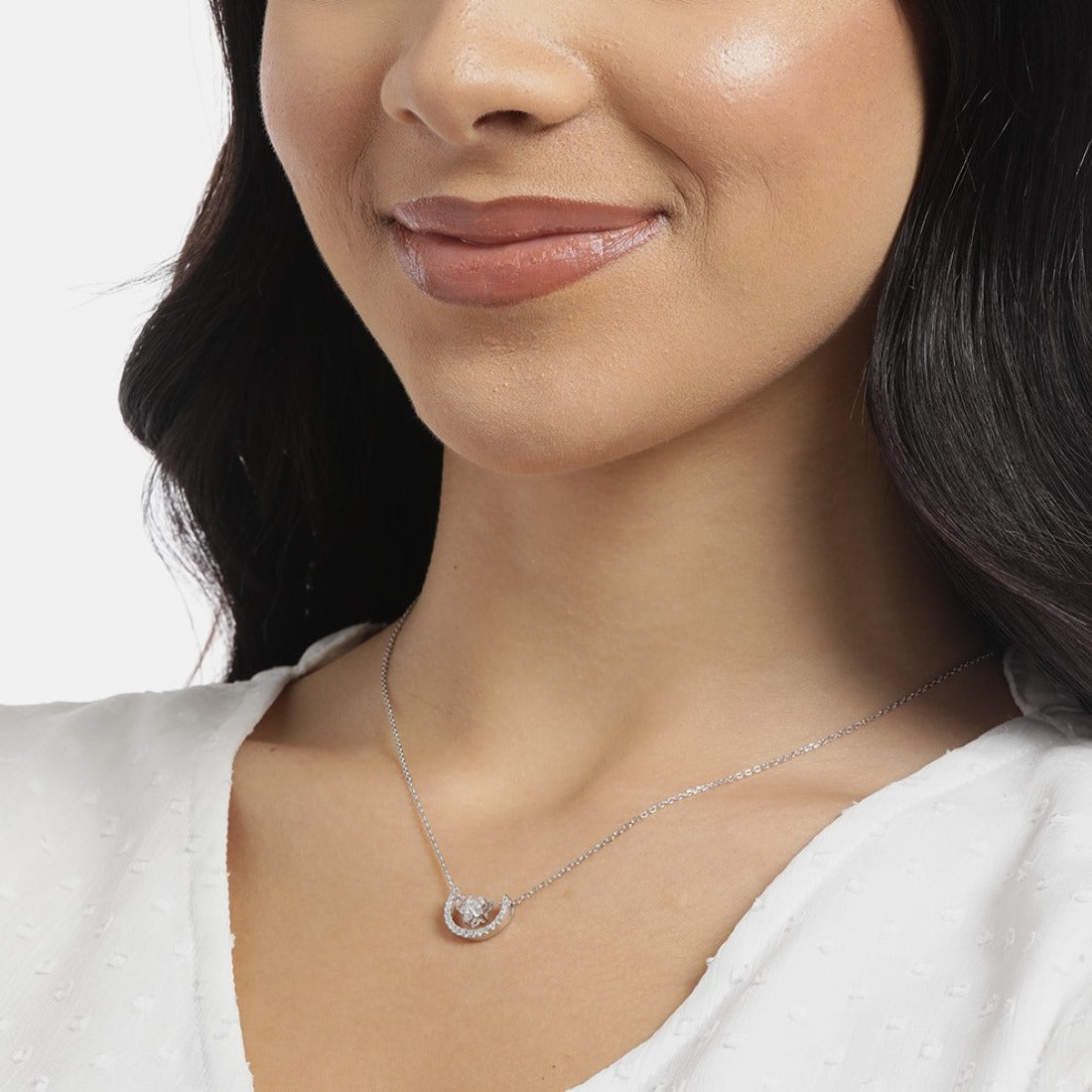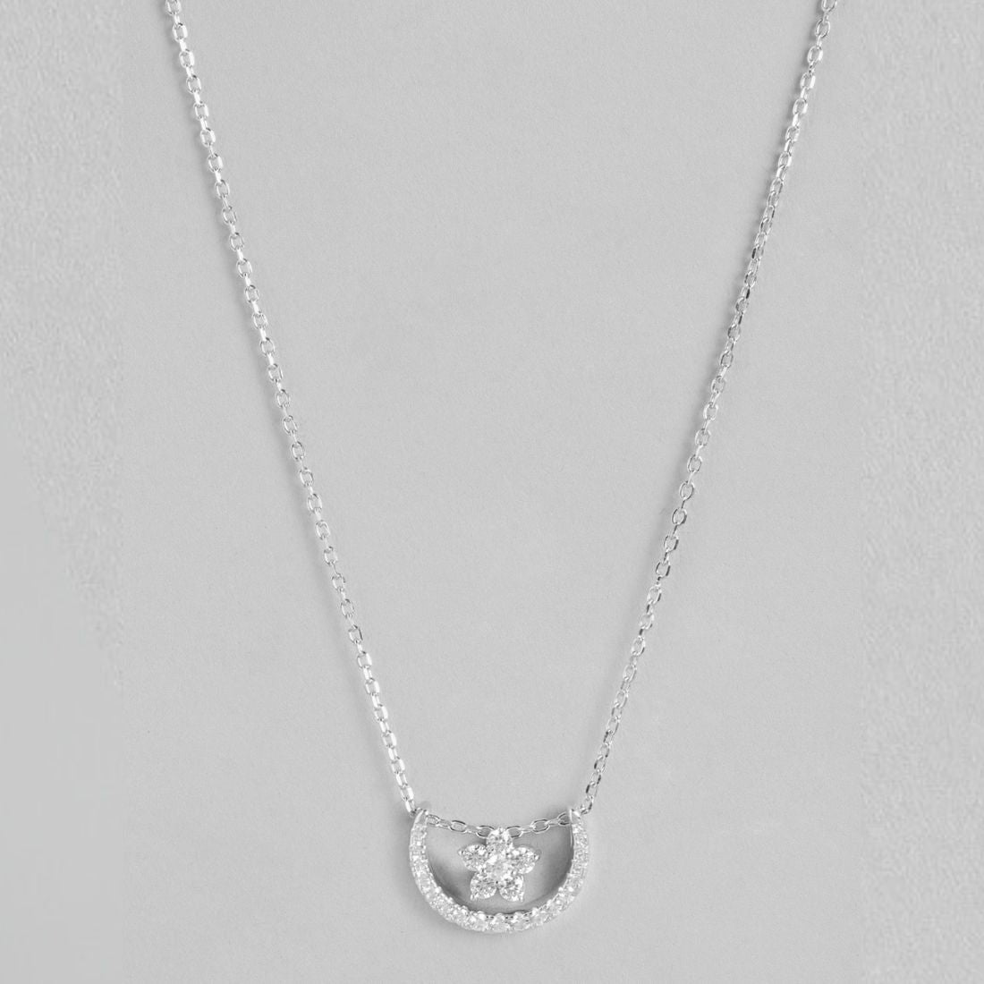 Product Description:- Embrace the magic of the night sky with our Celestial Radiance Charm Necklace. Crafted from high-quality 925 Sterling Silver and plated with enduring rhodium, this necklace features a enchanting design with sparkling Cubic Zirconia depicting stars and moons. The result is a captivating piece that seamlessly blends sophistication with celestial allure, making it the perfect choice for adding a touch of refined glamour to any occasion.