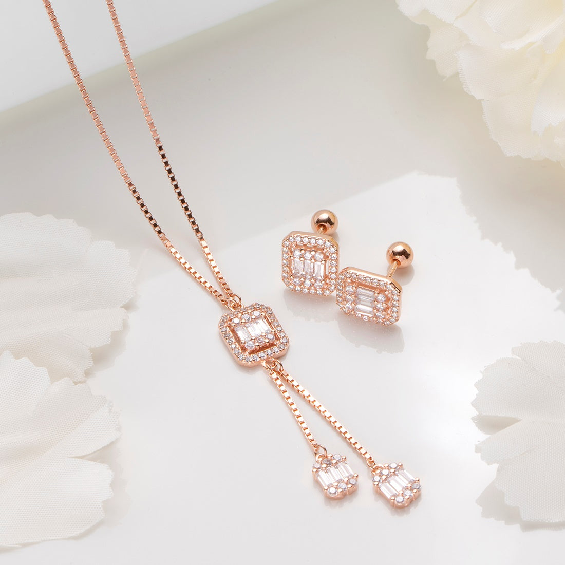 Cherished Luminance Rose Gold Plated 925 Sterling Silver Jewelry Set