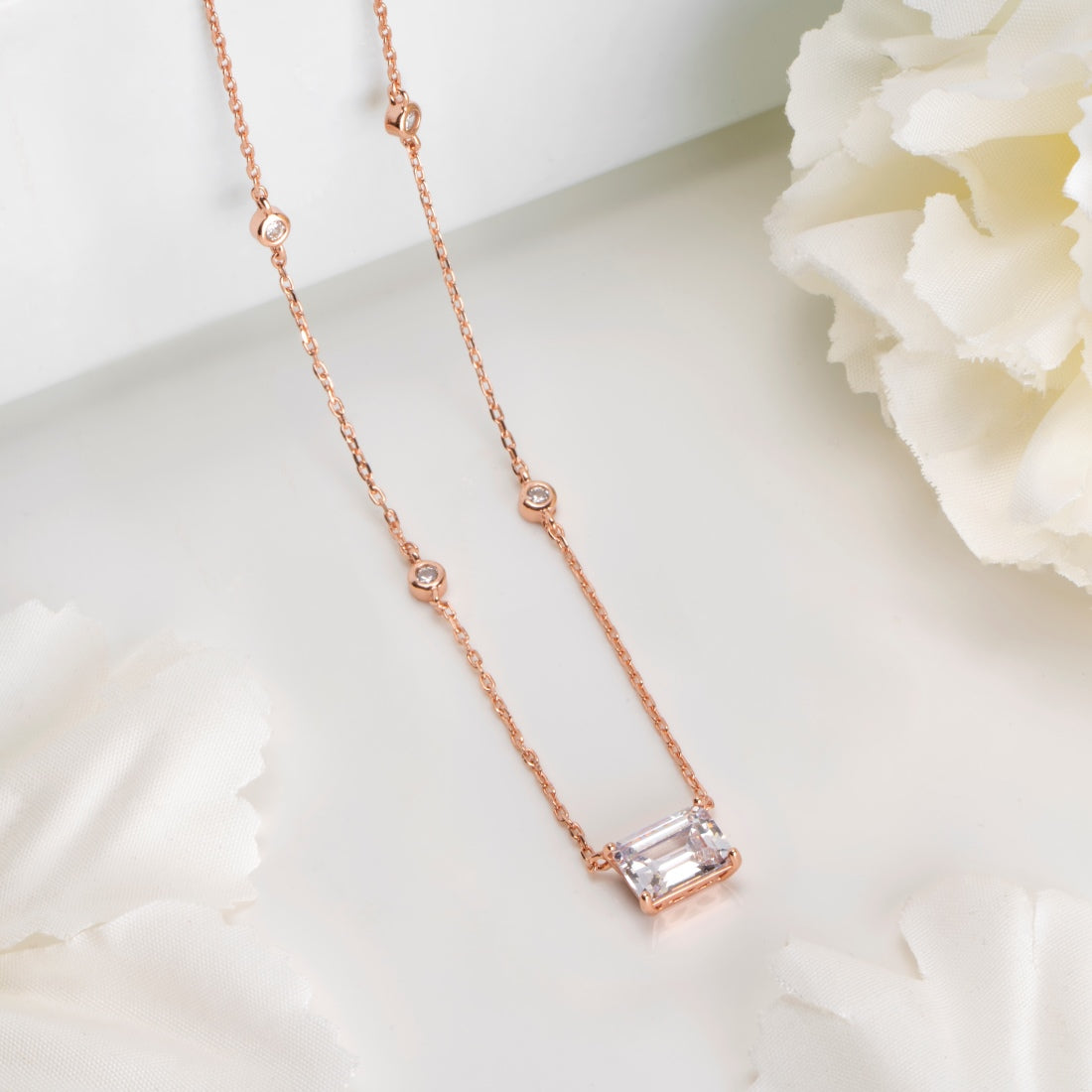 Cherished Luster Rose Gold CZ 925 Sterling Silver Necklace