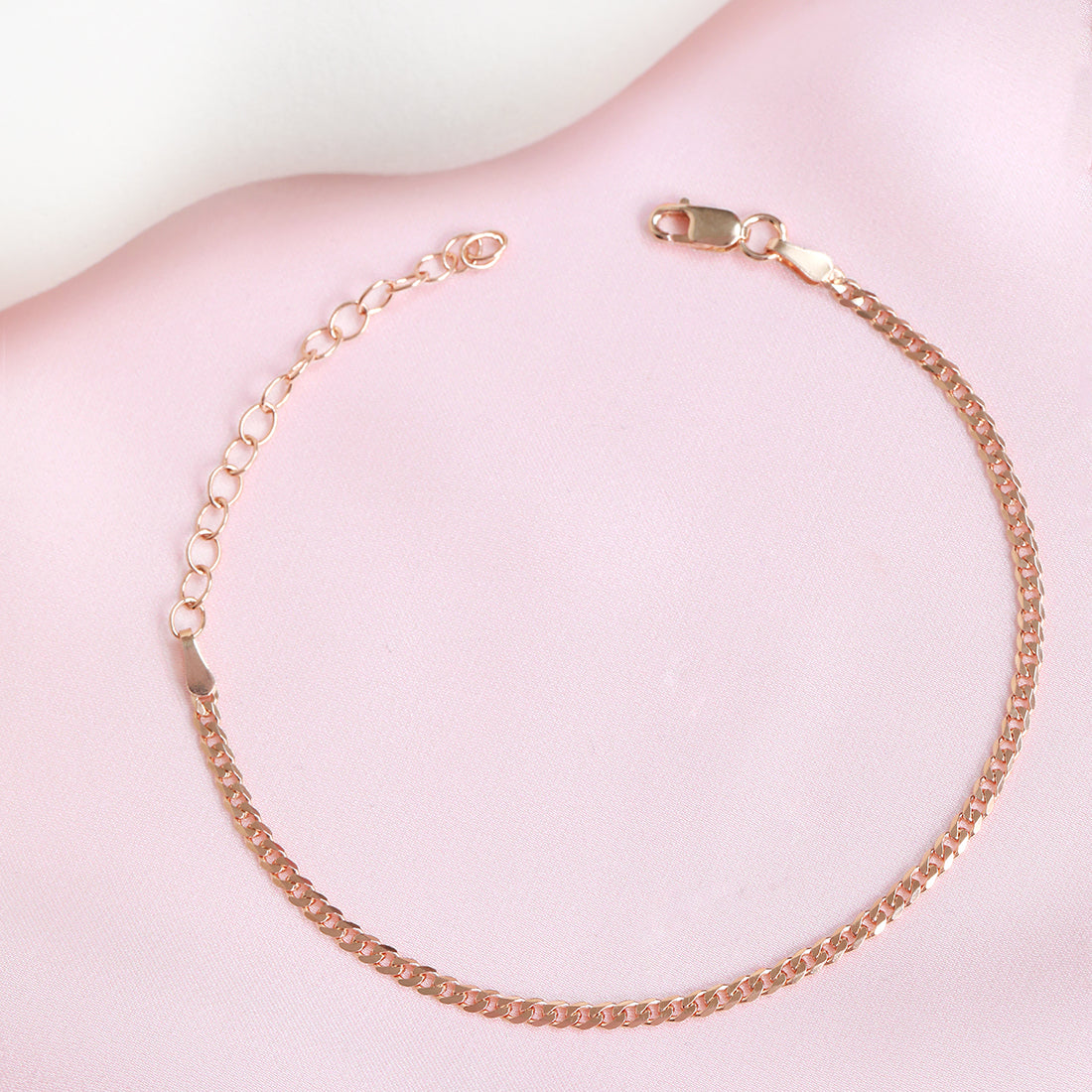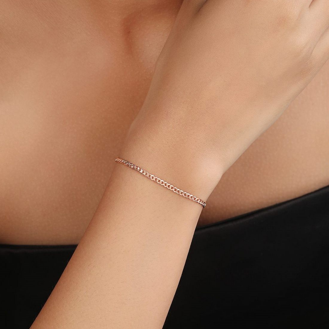 Product Description:- Add a touch of elegance to your jewelry collection with this chic 925 sterling silver link chain bracelet, beautifully enhanced with rose gold plating. The sophisticated link chain design offers a timeless appeal that effortlessly complements any outfit, from casual to formal. The rose gold plating provides a warm, luxurious glow, making this bracelet a standout piece. Crafted with precision and attention to detail, this bracelet combines durability with refined style, making it the perfect accessory for any occasion.