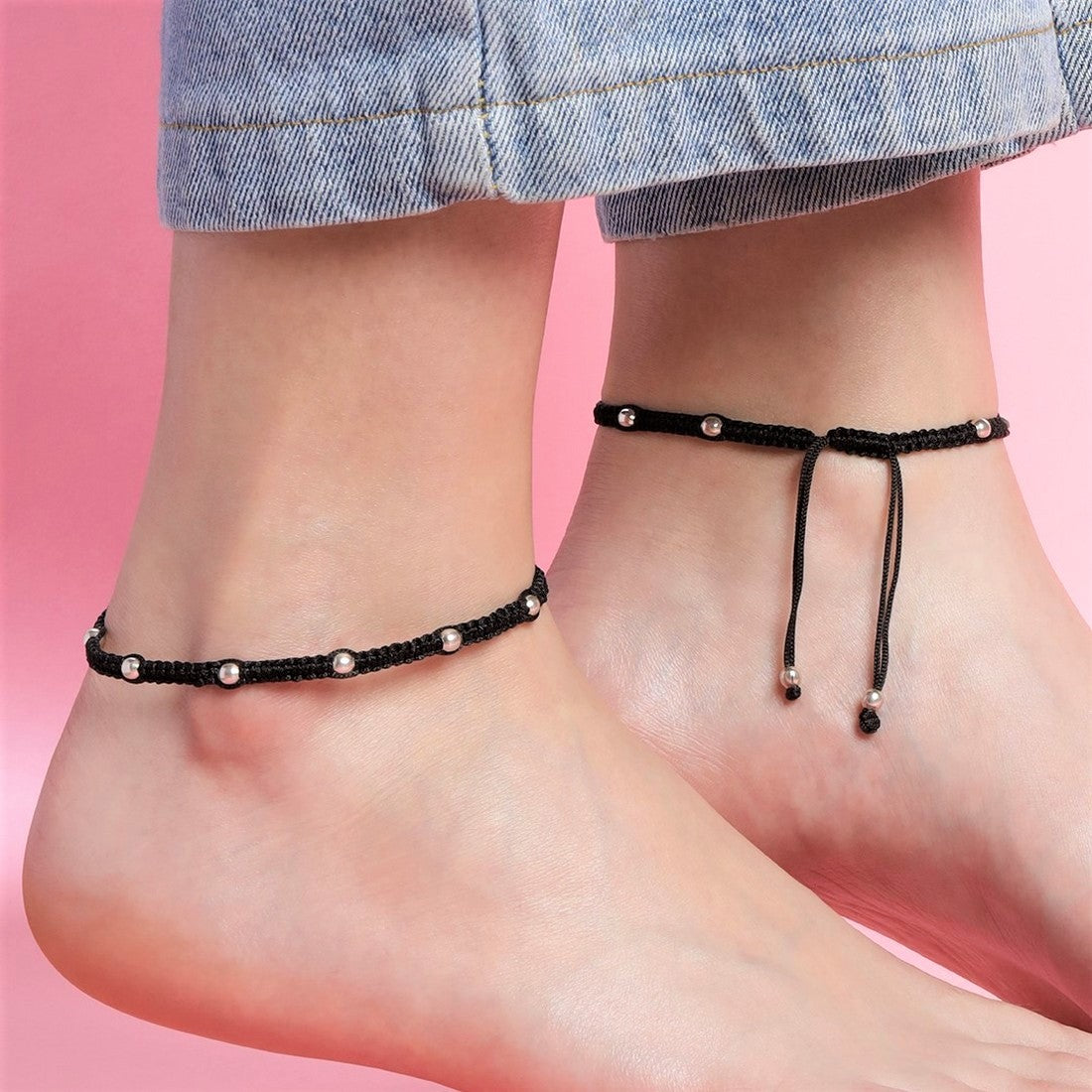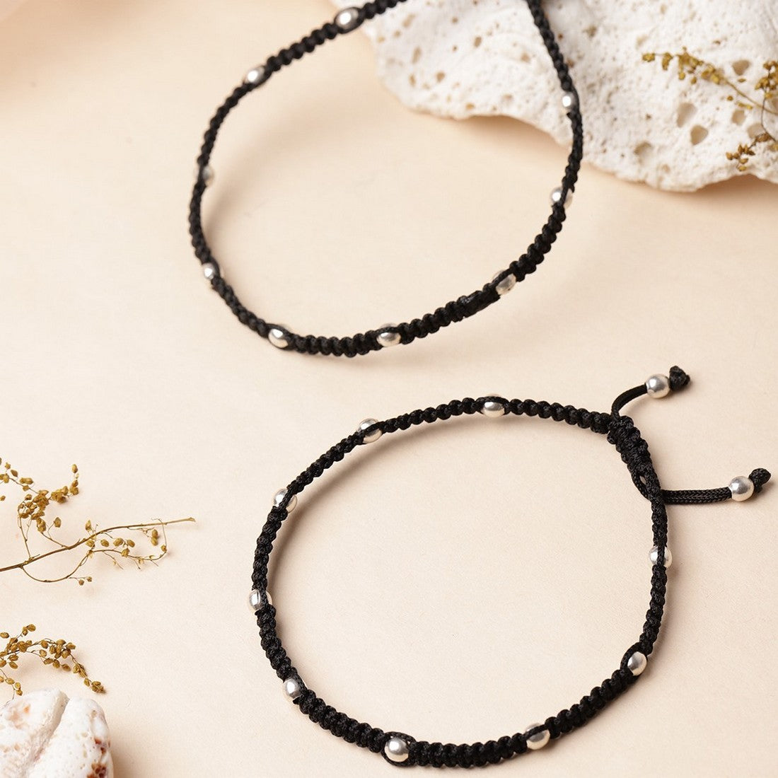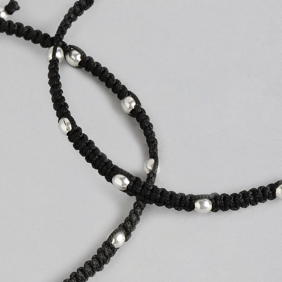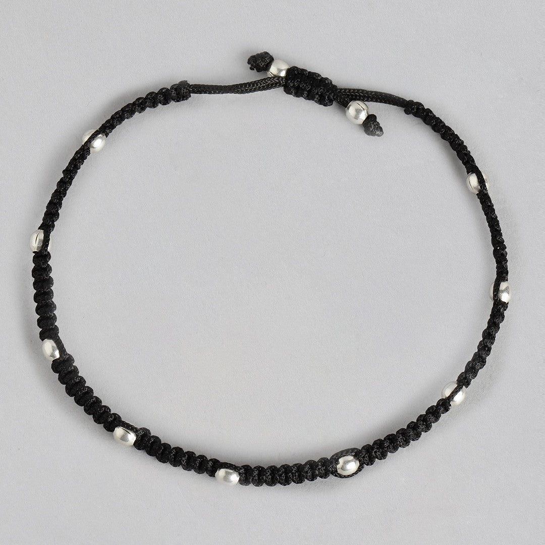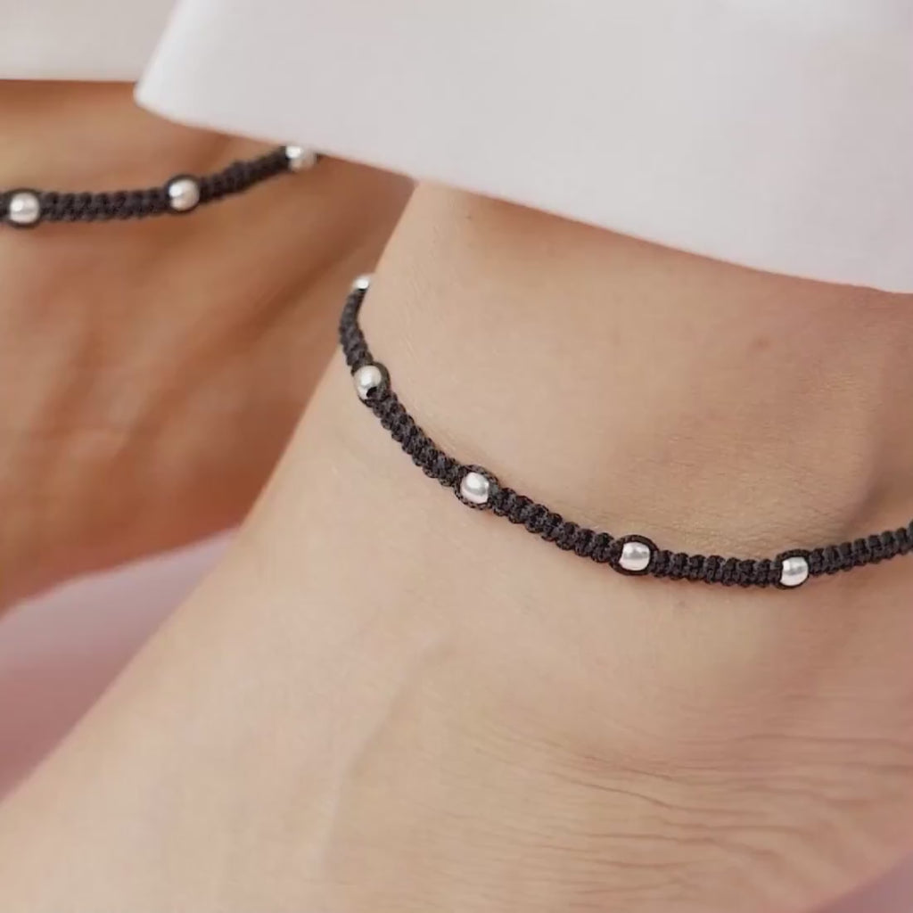 Classic Beaded Rhodium Plated 925 Sterling Silver Thread Anklet