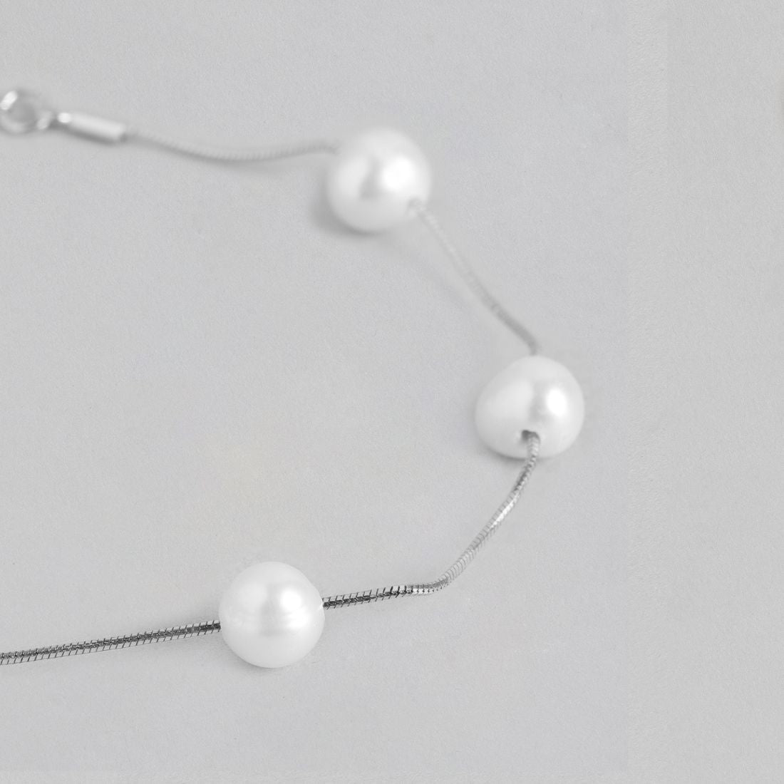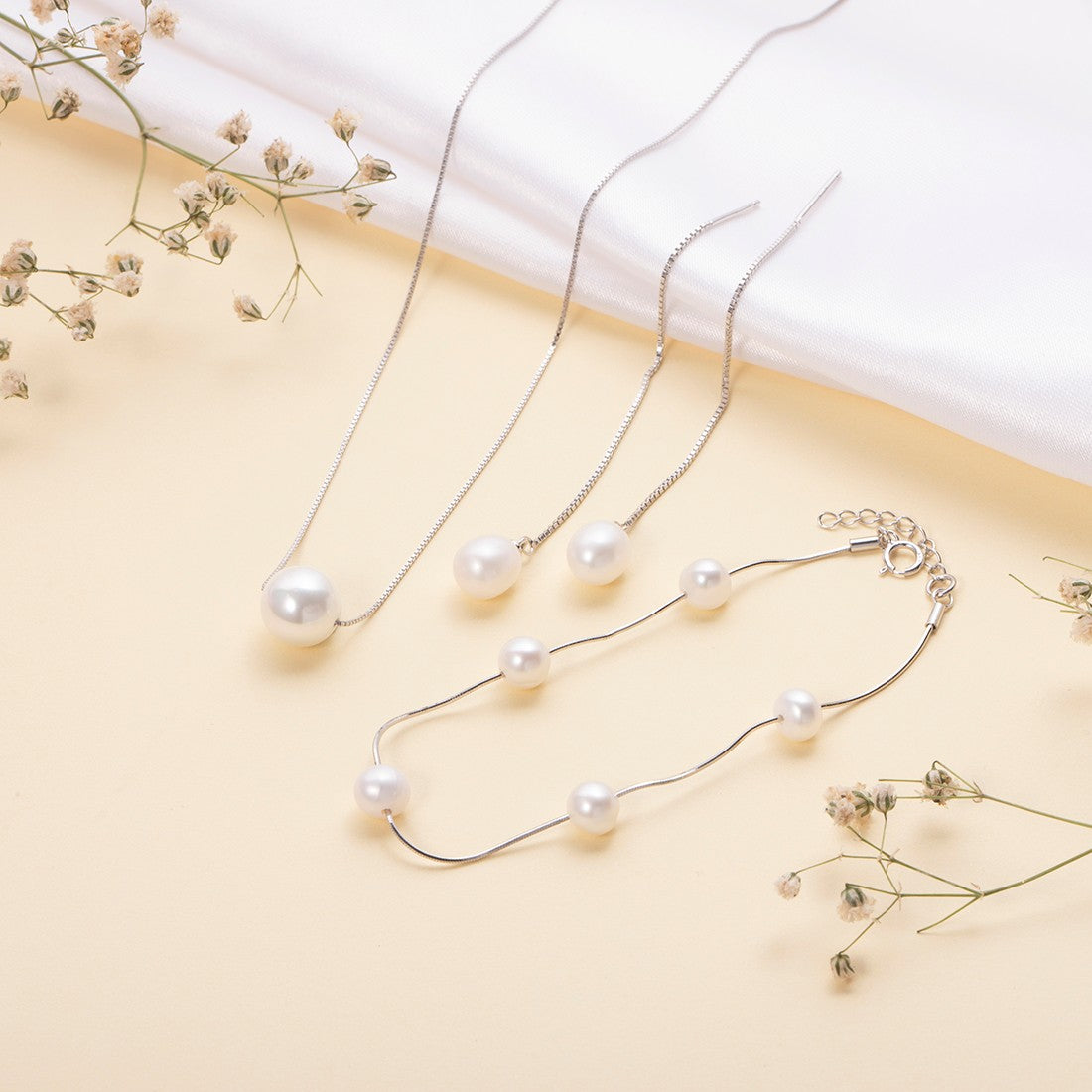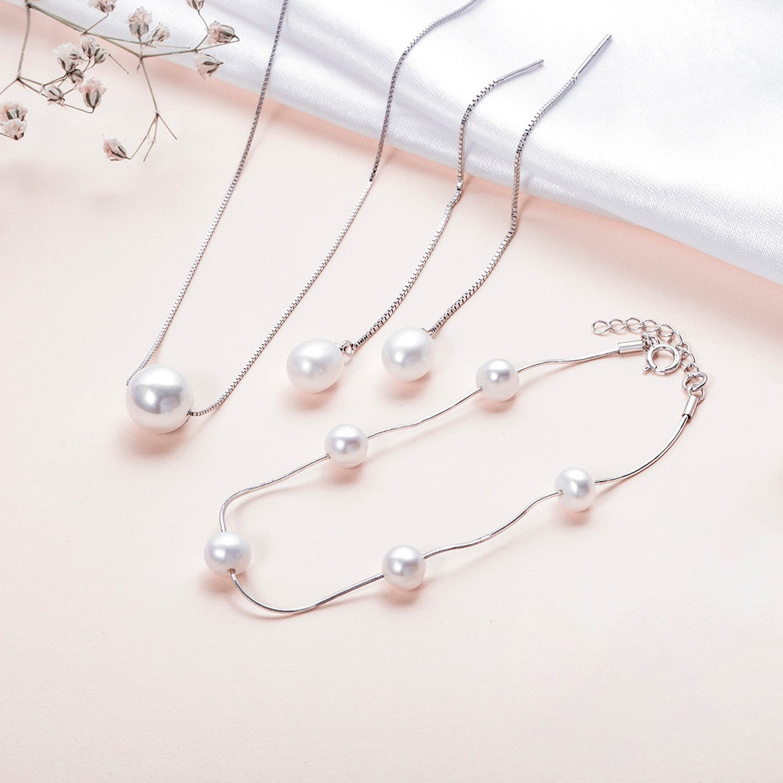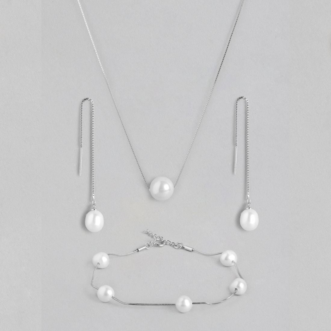 Classic Pearl Rhodium Plated 925 Sterling Silver Jewellery Set