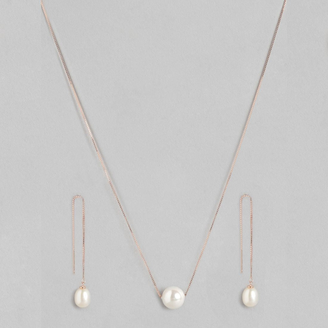 Product Description:- Fall in love all over again with the Pearl Romance Rose Gold Jewelry Set. Perfect for a special date night or a romantic gesture, this stunning set features a rose gold plated 925 sterling Silver Pearl pendant and matching earrings, symbolizing the pure and eternal love between two souls. Show your loved one how much they mean to you with this timeless and elegant jewelry set.
