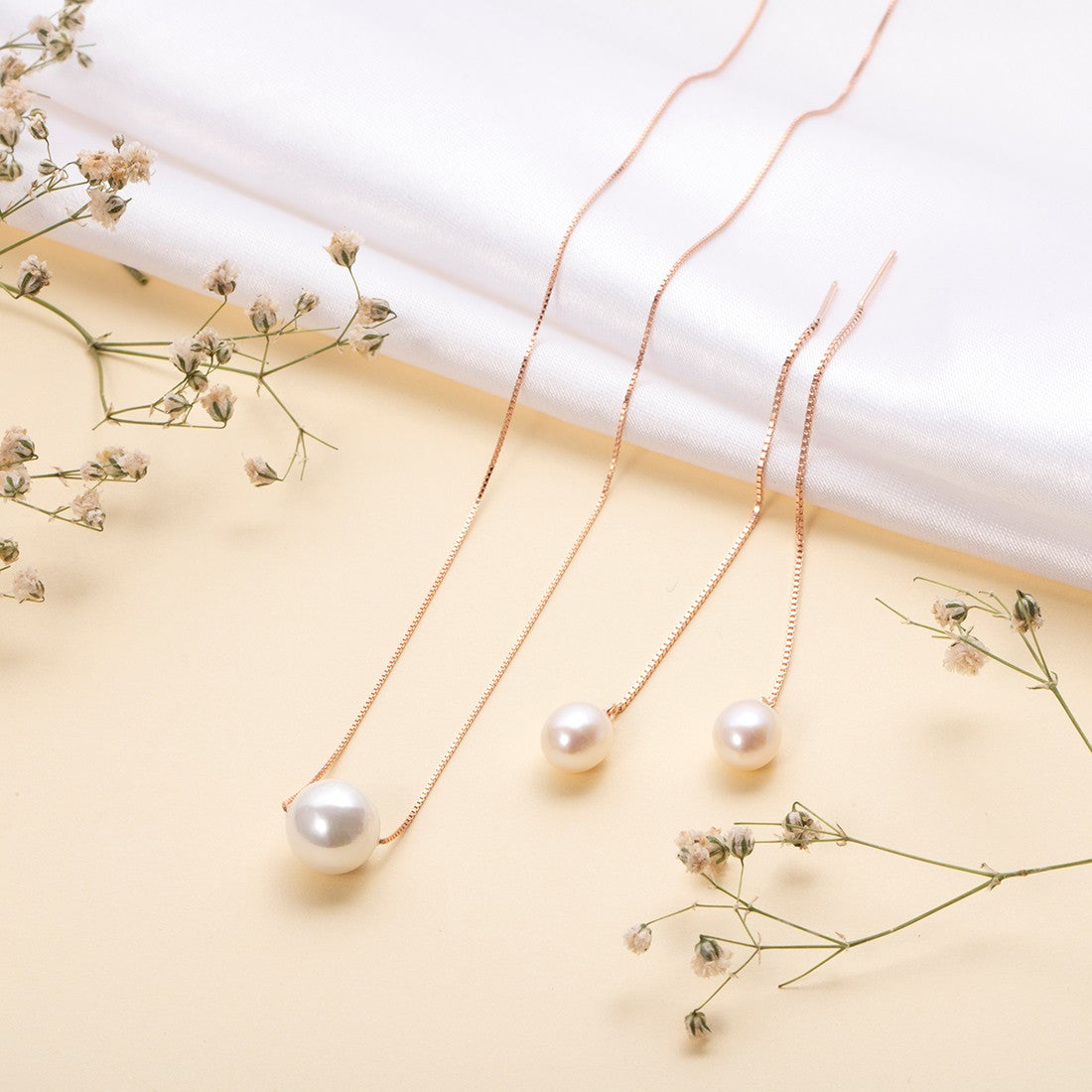Classic Pearl Rose Gold Plated 925 Sterling Silver Jewellery Set