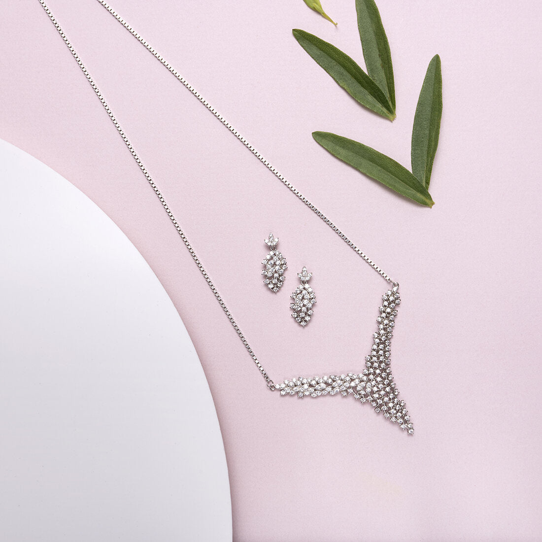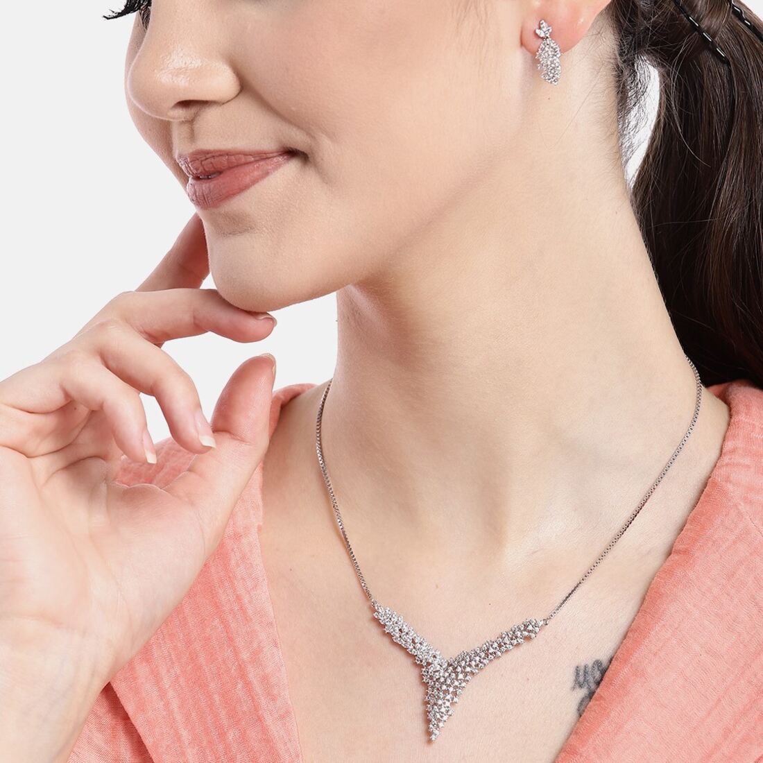 Product Description:-This design needs no words to describe its elegance. Stay on top of your fashion game with this Regal necklace set from Zavya.